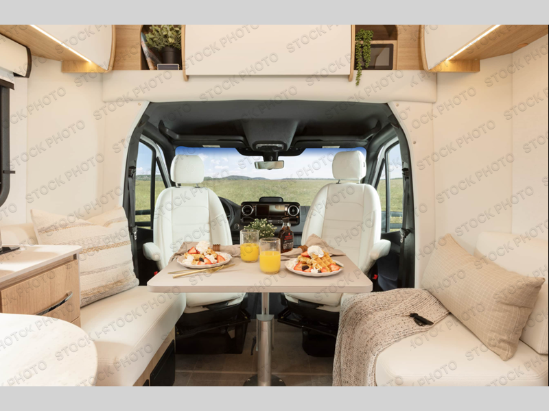 Each Unity Class B+ diesel motorhome by Leisure Travel sits on a durable Mercedes-Benz Sprinter 3500 dual rear wheel chassis with a 2.0-L Turbocharged I-4 diesel engine to power your adventures. The powder coated steel undercarriage support structure and vacuum-bonded construction provide a coach that will last for years, and there are sleek exterior paint options to make the coach your own. You'll love driving the Unity with its electronic stability control, adaptive cruise control, 9-speed automatic transmission with quieter noise levels and more comfort. The luxurious interior includes Ultrafabrics, a contoured solid surface Corian countertop in the kitchen, modern cabinetry finishes, plus many more comforts. And all of your power need will be met with 270-Ah 12V Lithium coach batteries with an internal heating system, plus a 3000W pure sine inverter and a 30 Amp power cord. The optional Desert Shadow Edition can be added to any Unity floorplan to give you a more modern design inspired by the earthly tones and striking silhouettes. This package includes an exclusive canyon exterior paint with black accents, exclusive Desert Shadow badging, matte black hardware, Dune Ultrafabrics and more; see dealer for more details!