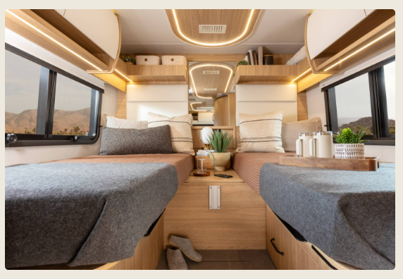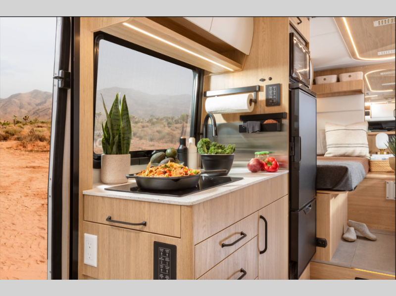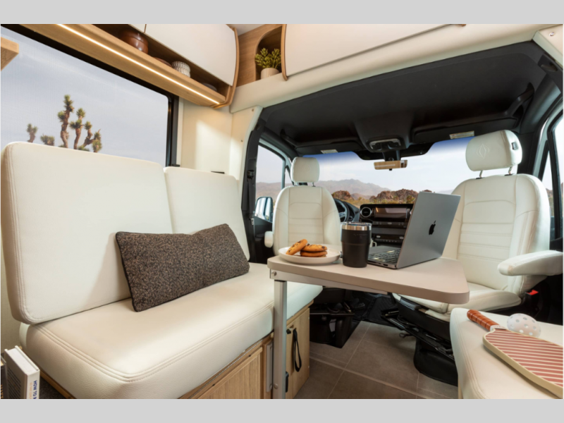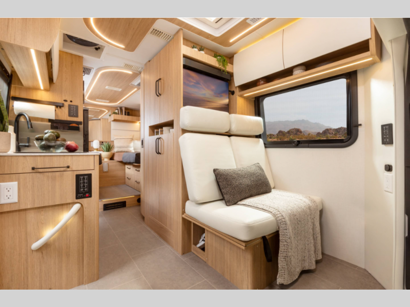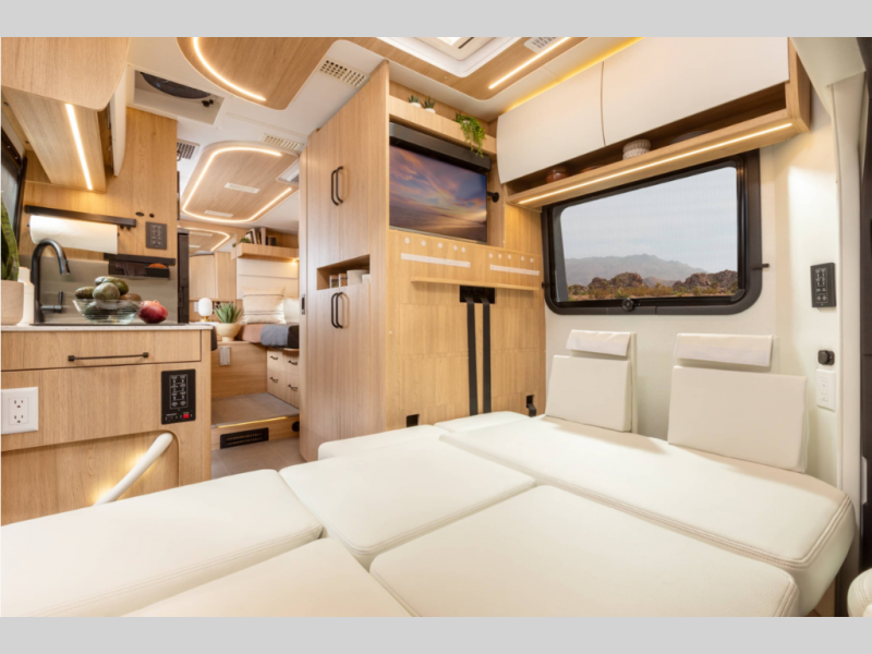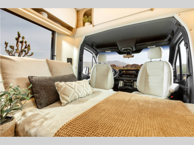 Each Unity Class B+ diesel motorhome by Leisure Travel sits on a durable Mercedes-Benz Sprinter 3500 dual rear wheel chassis with a 2.0-L Turbocharged I-4 diesel engine to power your adventures. The powder coated steel undercarriage support structure and vacuum-bonded construction provide a coach that will last for years, and there are sleek exterior paint options to make the coach your own. You'll love driving the Unity with its electronic stability control, adaptive cruise control, 9-speed automatic transmission with quieter noise levels and more comfort. The luxurious interior includes Ultrafabrics, a contoured solid surface Corian countertop in the kitchen, modern cabinetry finishes, plus many more comforts. And all of your power need will be met with 270-Ah 12V Lithium coach batteries with an internal heating system, plus a 3000W pure sine inverter and a 30 Amp power cord.