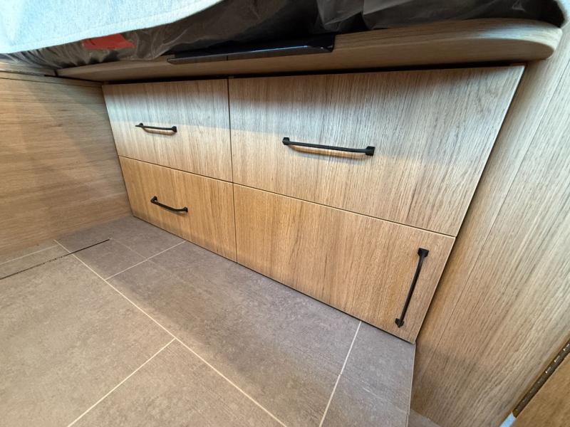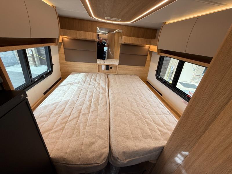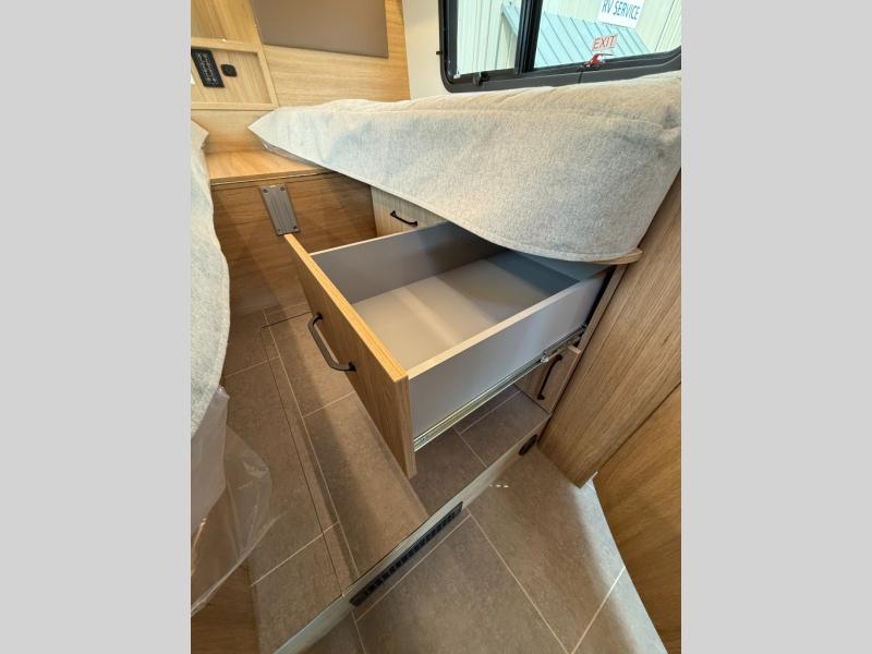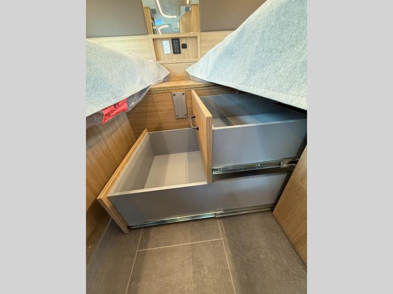 You're going to love this coach that can comfortably sleep four thanks to the rear twin beds and the swivel lounge that converts to a 41" x 72.5" front bed! The lounge also features a dual table system allowing you to dine, relax or work while you're away from home. You'll find the middle dry bath to be ultra convenient with its spacious shower and storage. And the chef of your group will love making meals on the two-burner induction cooktop or in the convection microwave. There is also a countertop extension, garbage can and pull-out pantry for added convenience. You'll sleep soundly on the rear twin beds with a queen bed conversion, and there is plenty of storage space for your belongings. And the optional all-wheel drive can be chosen for even better performance and stability when traveling!