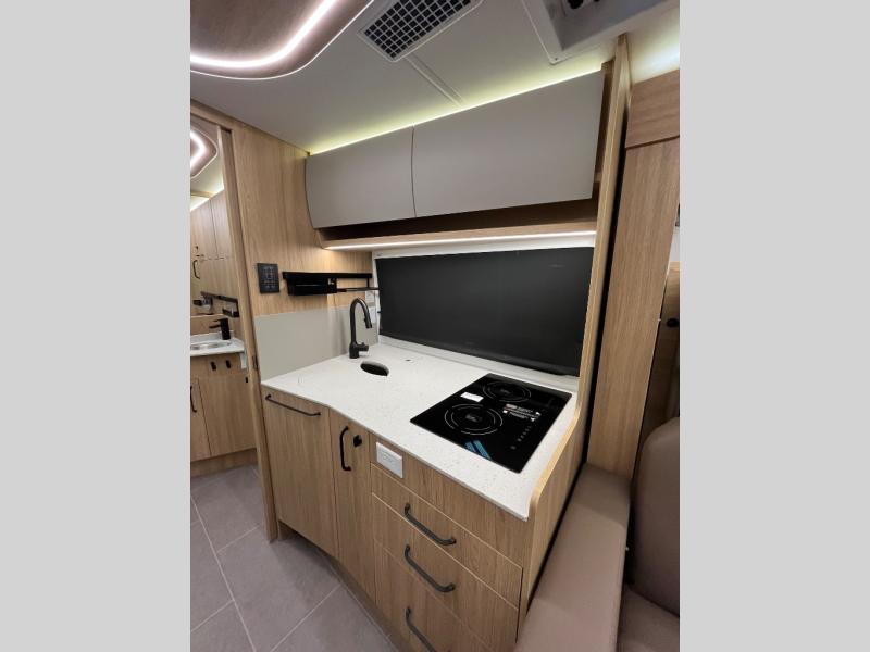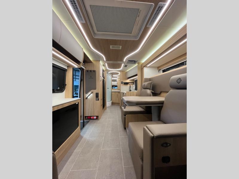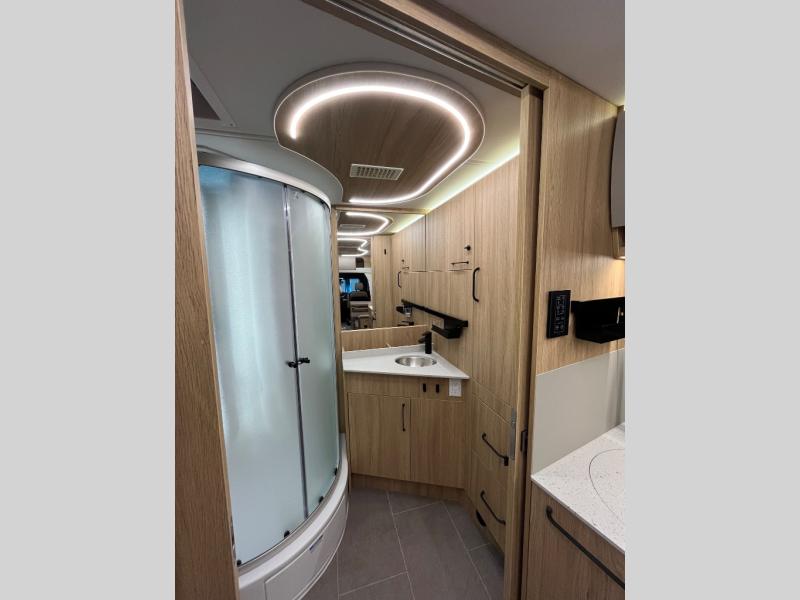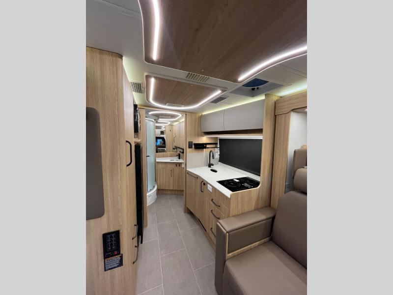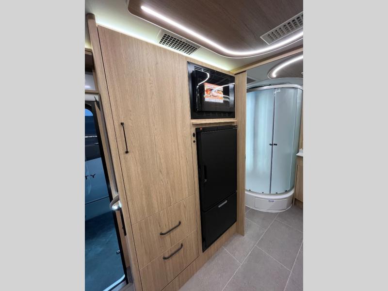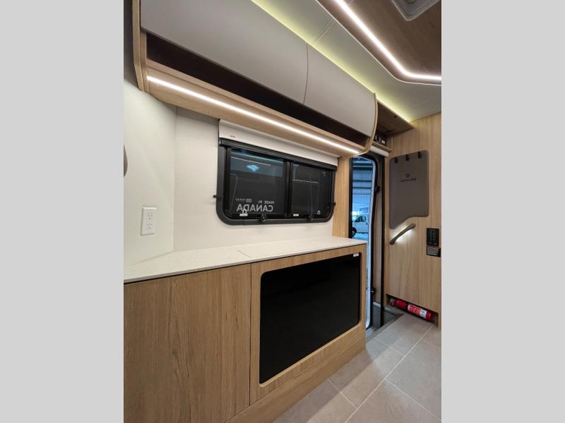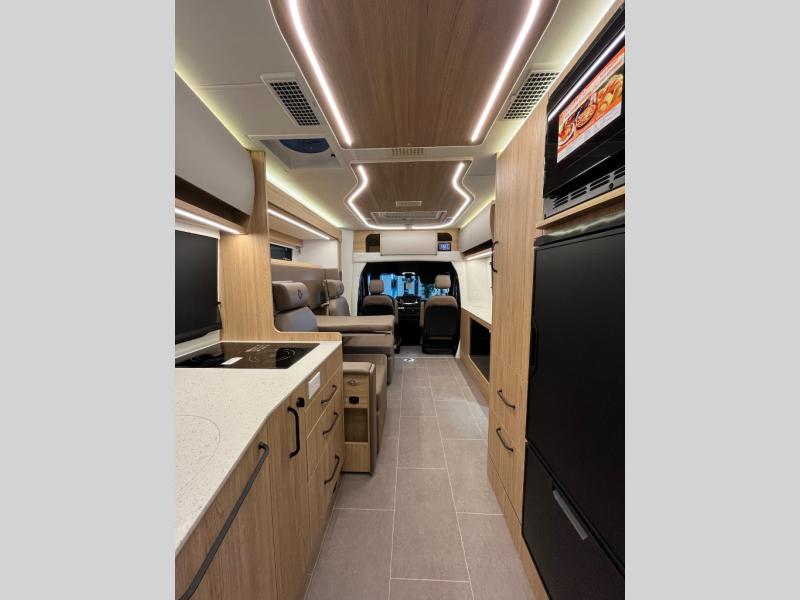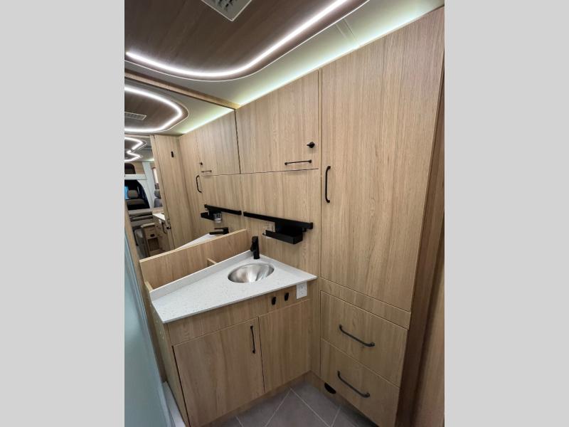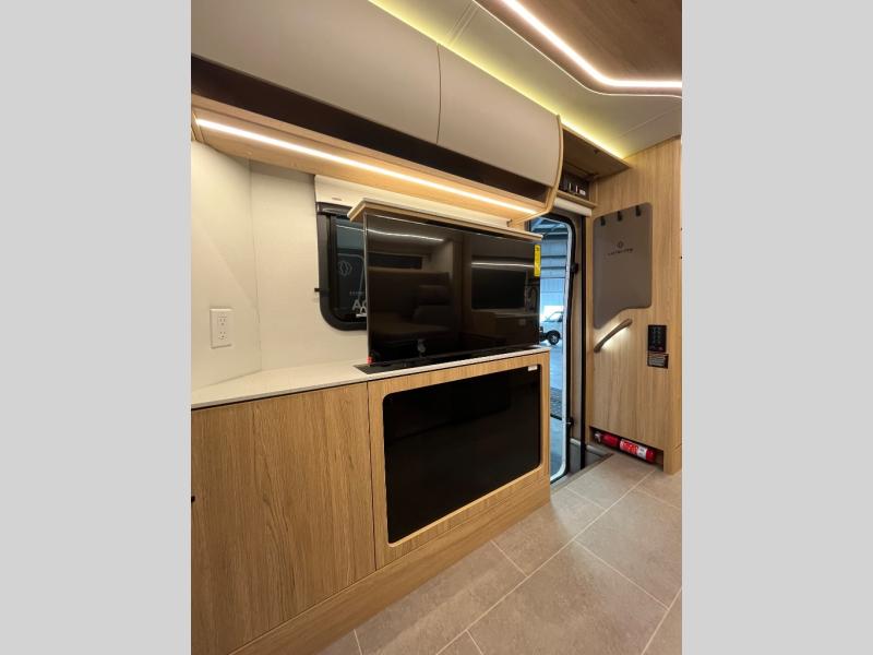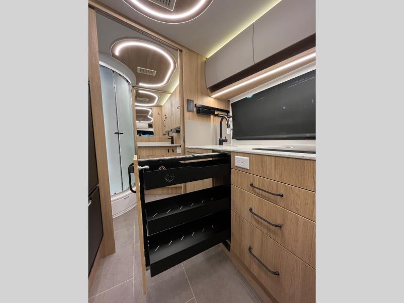 Each Unity Class B+ diesel motorhome by Leisure Travel sits on a durable Mercedes-Benz Sprinter 3500 dual rear wheel chassis with a 2.0-L Turbocharged I-4 diesel engine to power your adventures. The powder coated steel undercarriage support structure and vacuum-bonded construction provide a coach that will last for years, and there are eight sleek exterior paint options to make the coach your own. You'll love driving the Unity with its electronic stability control, adaptive cruise control, 9-speed automatic transmission with quieter noise levels and more comfort. There is even a digital mirror with sharp high-resolution that can be switched between convectional display and digital display for convenience. The luxurious interior includes Ultraleather furniture, a contoured solid surface Corian countertop in the kitchen, new decor options, plus many more comforts. And all of your power need will be met with 270-Ah, 12V Lithium coach batteries with an internal heating system, plus a 3000W pure sine inverter and a 30 Amp power cord. If you choose the optional 60th Anniversary Edition, you will enjoy the Diamond White exterior paint, diamond-quilted upholstery, Cool Ice Ultrafabrics, matte black hardware, and more elegant features that are exclusive to this package!