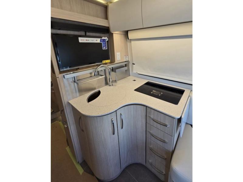 Each Unity Class B+ diesel motorhome by Leisure Travel sits on a durable Mercedes-Benz Sprinter 3500 dual rear wheel chassis with a 2.0-L Turbocharged I-4 diesel engine to power your adventures. The powder coated steel undercarriage support structure and vacuum-bonded construction provide a coach that will last for years, and there are eight sleek exterior paint options to make the coach your own. You'll love driving the Unity with its electronic stability control, adaptive cruise control, 9-speed automatic transmission with quieter noise levels and more comfort. There is even a digital mirror with sharp high-resolution that can be switched between convectional display and digital display for convenience. The luxurious interior includes Ultraleather furniture, a contoured solid surface Corian countertop in the kitchen, new decor options, plus many more comforts. And all of your power need will be met with 270-Ah, 12V Lithium coach batteries with an internal heating system, plus a 3000W pure sine inverter and a 30 Amp power cord. If you choose the optional 60th Anniversary Edition, you will enjoy the Diamond White exterior paint, diamond-quilted upholstery, Cool Ice Ultrafabrics, matte black hardware, and more elegant features that are exclusive to this package!