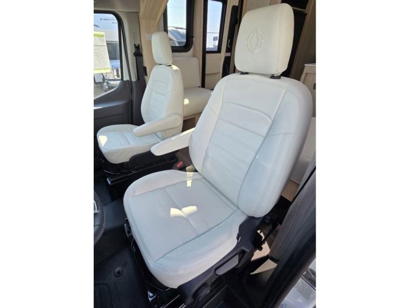 With any Leisure Travel Wonder Class B+ gas motorhome, the construction includes vacuum bonded aluminum framed insulated contoured sidewalls and a domed roof with fiberglass exterior, and a floor with composite exterior on a Ford Transit dual rear wheel chassis. Some highlights include the 16" heavy-duty forged aluminum alloy wheels, the auto high-beam headlamps, and the advance active safety features. The interior offers the SYNC 4 navigation system, curved soft close overhead cabinetry doors with hidden catches, full extension ball bearing soft close drawer tracks, LED aisle lighting and above cabinet hidden accent lights, and tile look vinyl flooring throughout for style and easy care. Optional AWD is available, along with the optional 60th Anniversary Edition decor and exterior color, solar panels for off-grid capability, a battery upgrade, and more!
