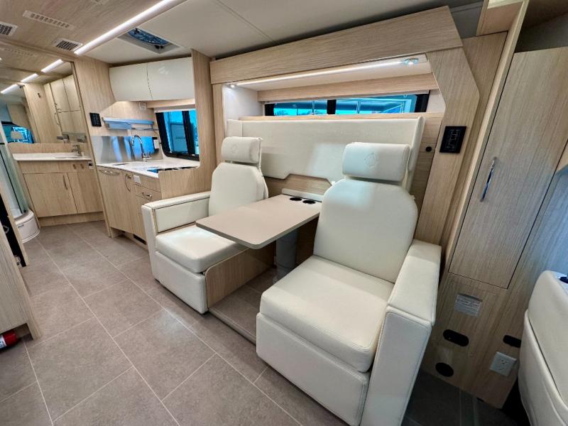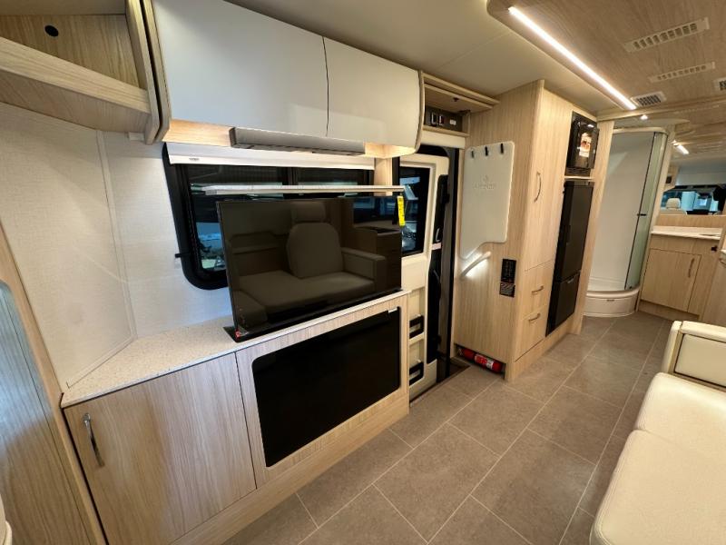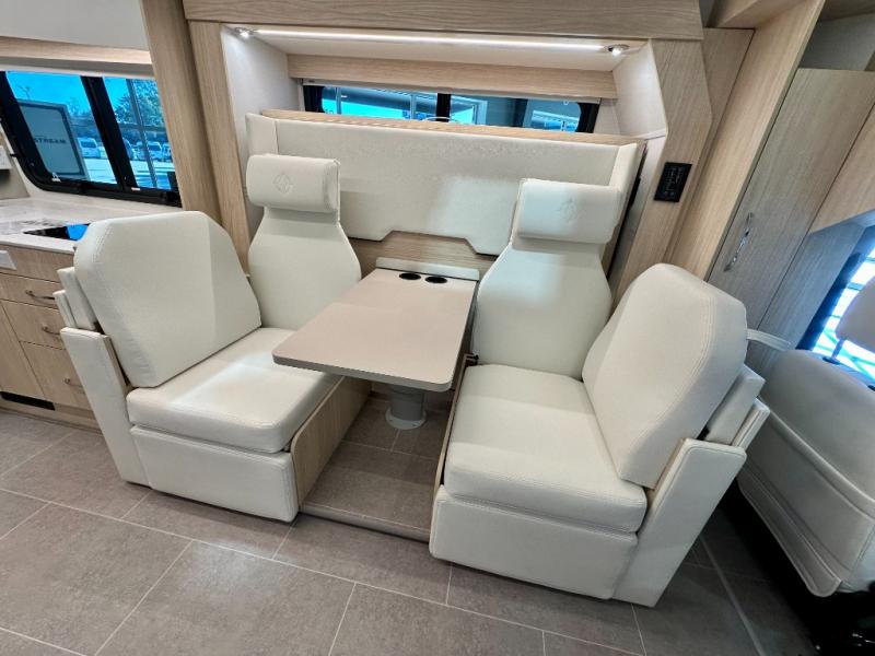 The slide out in this coach will give you plenty of space to relax! You will find that the Murphy bed will provide a great night's rest each night, and the full bath will allow you to clean up each morning. The redesigned Leisure Lounge System features dual reclining chairs, an updated dinette table system, and a panoramic window for great outdoor views. The swivel captain's seats can turn around to become part of the living area during the day, and you'll find plenty of storage space throughout for all your belongings. The galley includes a convection microwave, a flush mount LP cooktop, plus a convenient garbage can and stainless steel backsplash for easy clean-up.