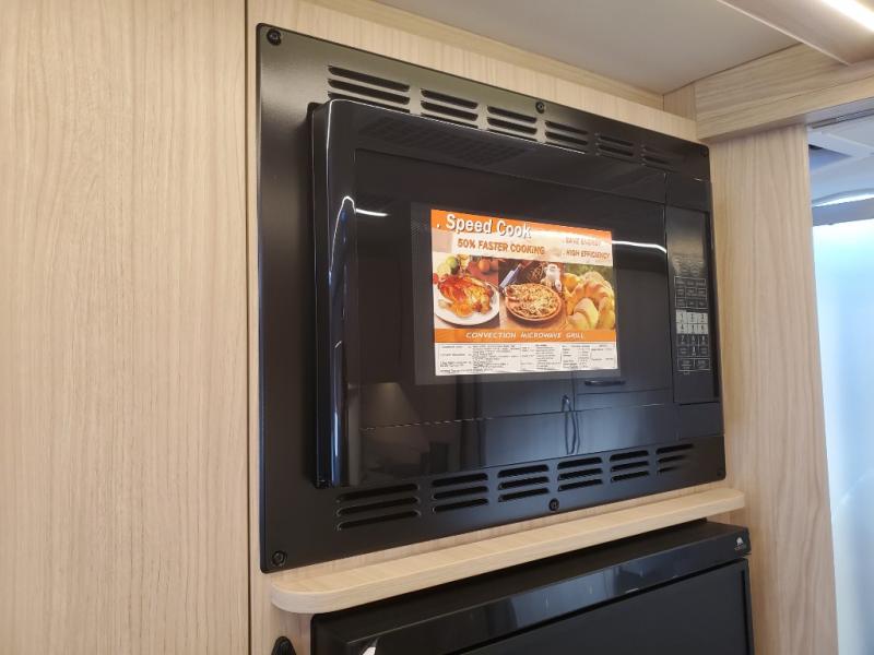 The slide out in this coach will give you plenty of space to relax! You will find that the Murphy bed will provide a great night's rest each night, and the full bath will allow you to clean up each morning. The redesigned Leisure Lounge System features dual reclining chairs, an updated dinette table system, and a panoramic window for great outdoor views. The swivel captain's seats can turn around to become part of the living area during the day, and you'll find plenty of storage space throughout for all your belongings. The galley includes a convection microwave, a flush mount LP cooktop, plus a convenient garbage can and stainless steel backsplash for easy clean-up.