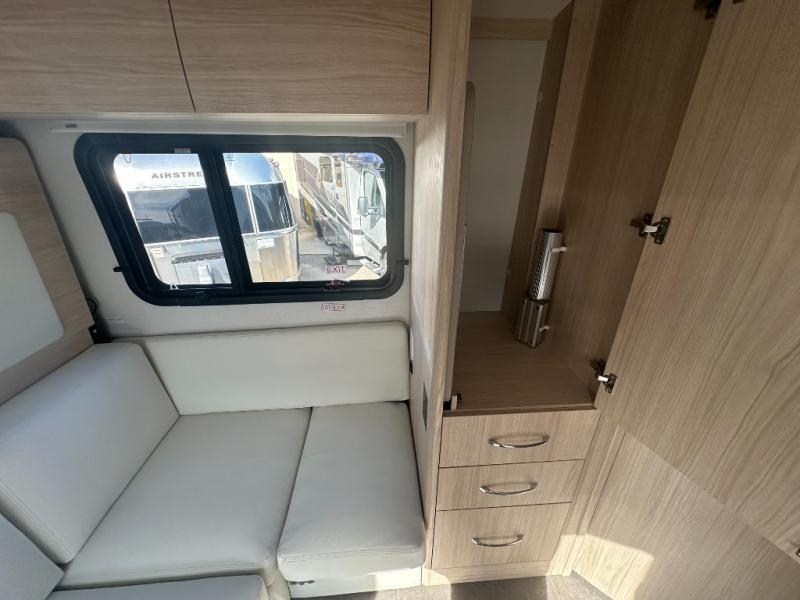 This coach combines comfort with versatility and convenience allowing you to travel wherever and whenever you want with your three favorite people! You will find seatbelts for four, a rear Murphy bed, and a removable front dinette area with an optional bed to sleep four. The rear offers a residential-style sectional lounge sofa with footrests and a swivel table to create a work station or another dining space. The galley offers a flip-down extension for more prep and serving space, a convection microwave oven, a flush mount LP cooktop with hinged glass cover, a garbage can, a pull-out pantry, and more to enjoy cooking while on the go.