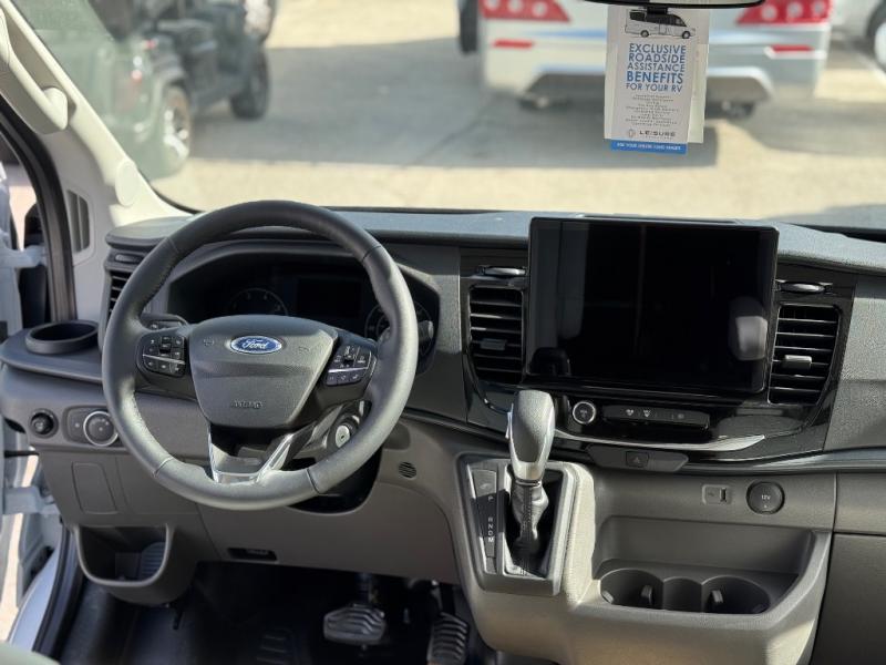 With any Leisure Travel Wonder Class B+ gas motorhome, the construction includes vacuum bonded aluminum framed insulated contoured sidewalls and a domed roof with fiberglass exterior, and a floor with composite exterior on a Ford Transit dual rear wheel chassis. Some highlights include the 16" heavy-duty forged aluminum alloy wheels, the auto high-beam headlamps, and the advance active safety features. The interior offers the SYNC 4 navigation system, curved soft close overhead cabinetry doors with hidden catches, full extension ball bearing soft close drawer tracks, LED aisle lighting and above cabinet hidden accent lights, and tile look vinyl flooring throughout for style and easy care. Optional AWD is available, along with the optional 60th Anniversary Edition decor and exterior color, solar panels for off-grid capability, a battery upgrade, and more!