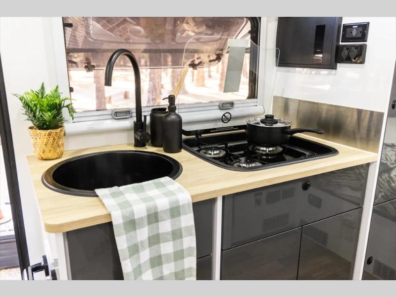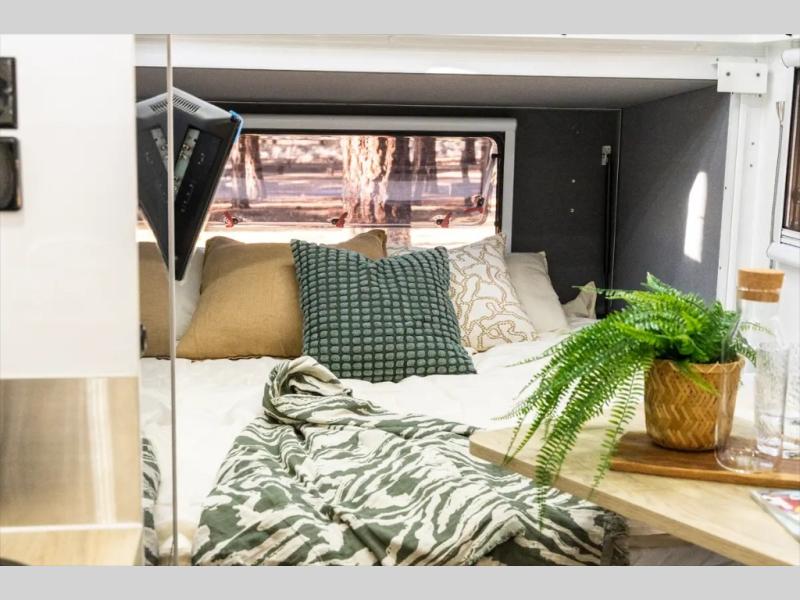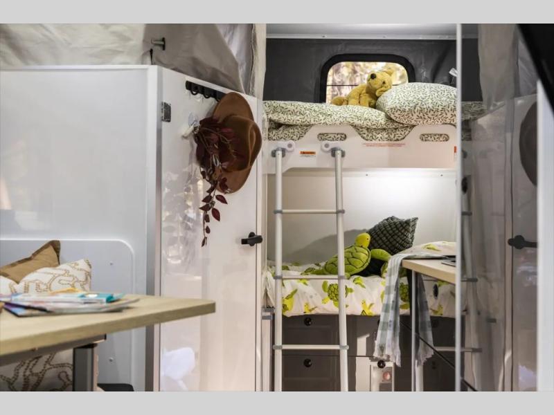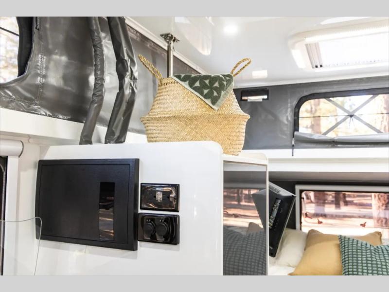 For families seeking a compact yet spacious hybrid travel trailer, the XT15-4E delivers the perfect balance of comfort and versatility. Designed for extended off-grid adventures, this model features a convenient wet bath, an innovative electric lift pop-top roof, and a powerful electrical system with 745W of rooftop solar capacity and a 400Ah lithium battery. The Truma Aventa Air Conditioner and VarioHeat Furnace provide reliable climate control, ensuring year-round comfort, while dual-pane windows and heated water tanks enhance all-season performance. Inside, the stylish modern interior features timber-style finishes, sleek black matte faucets, and thoughtfully designed spaces, creating a cozy retreat after a day of exploration.