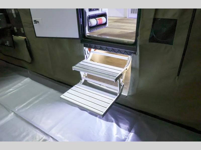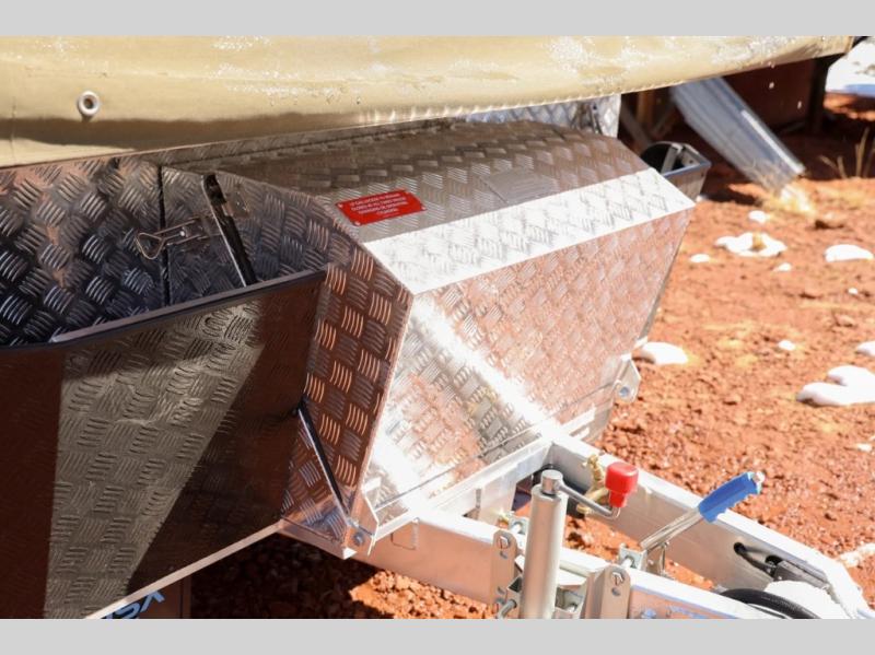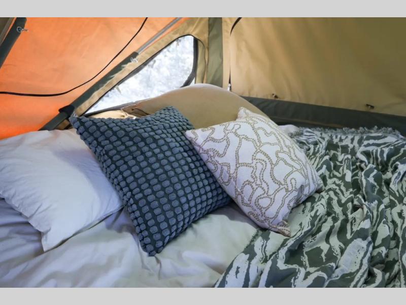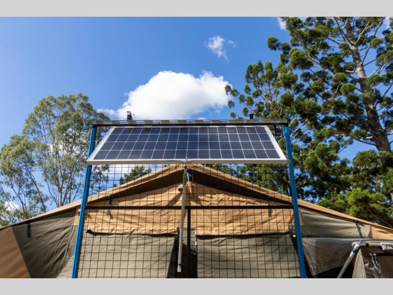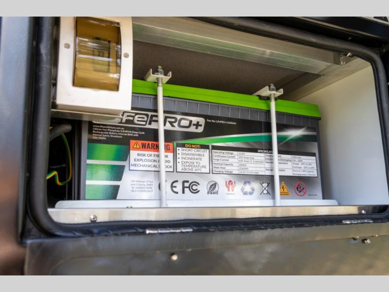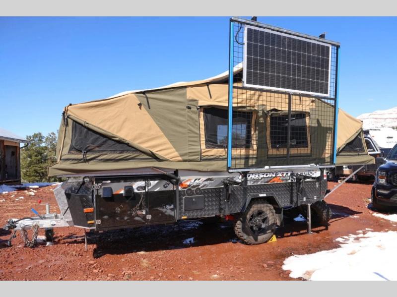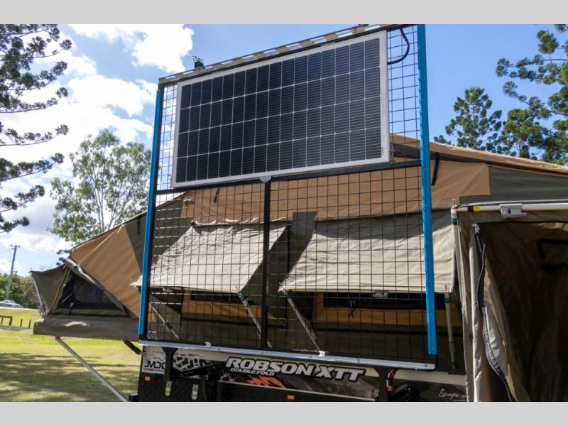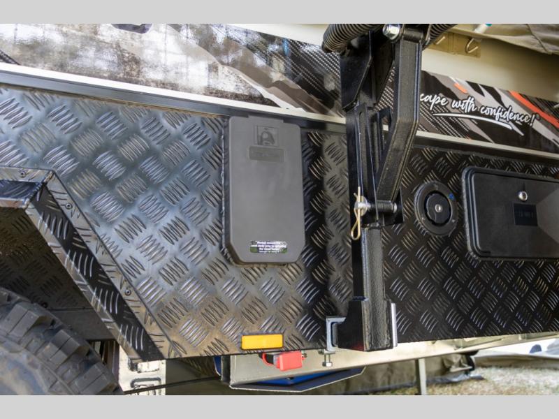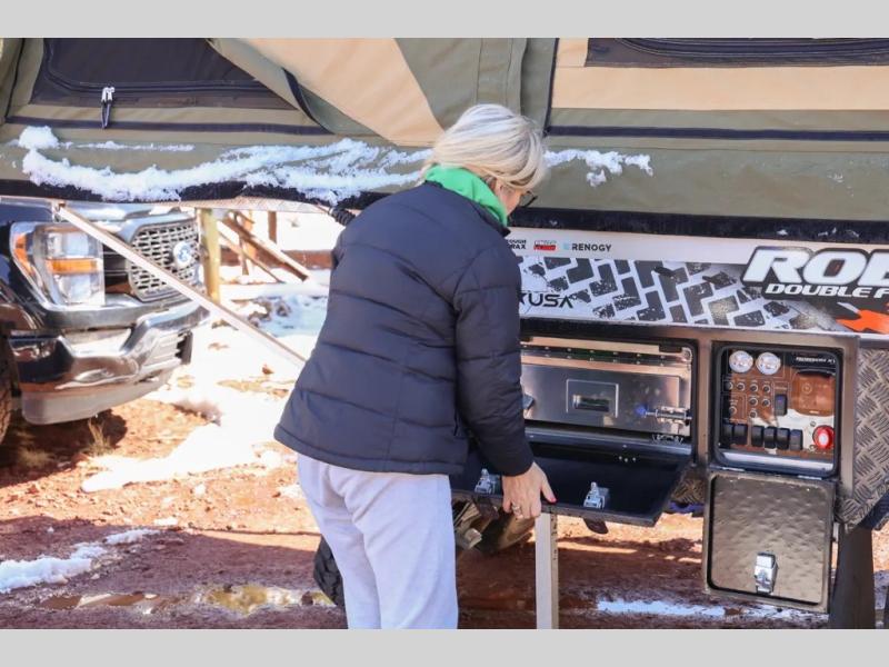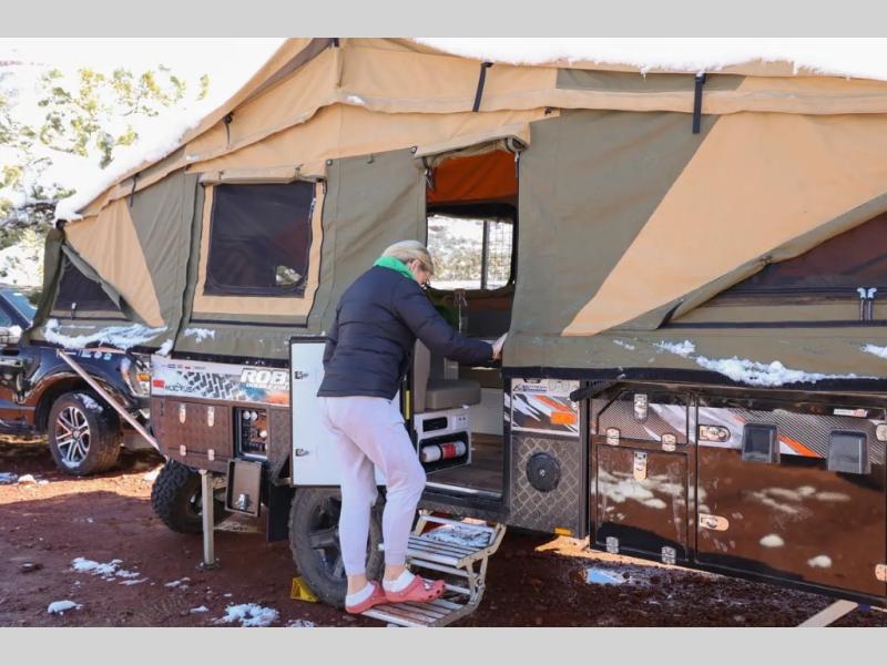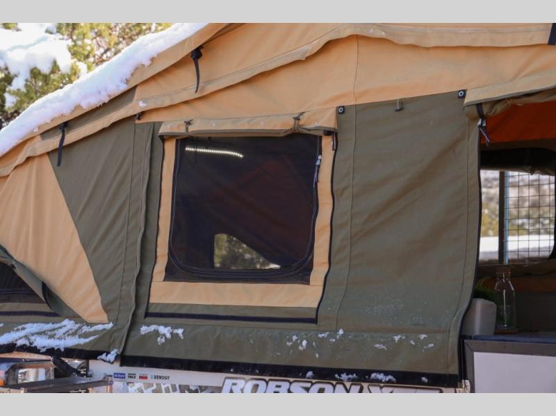 The Robson XTT off-road pop-up camper is built tough for adventure with a galvanized steel chassis, X-TRACK independent suspension, and Cruisemaster DO35 hitch. You can stay off-grid for longer periods of time thanks to the 200 watts of solar power, 300Ah of Renogy 12V lithium battery capacity, and Renogy REGO 3000W inverter. A removable, side-mounted storage rack will let you bring along extra camp gear, and the mesh screen stone guard includes a forward-facing mud flap for added protection. You'll also appreciate the cold weather design with insulated water lines, water tank heating pads, a Truma Combi 14,300 BTU/h furnace, and a Renogy battery with intelligent self-heating function!