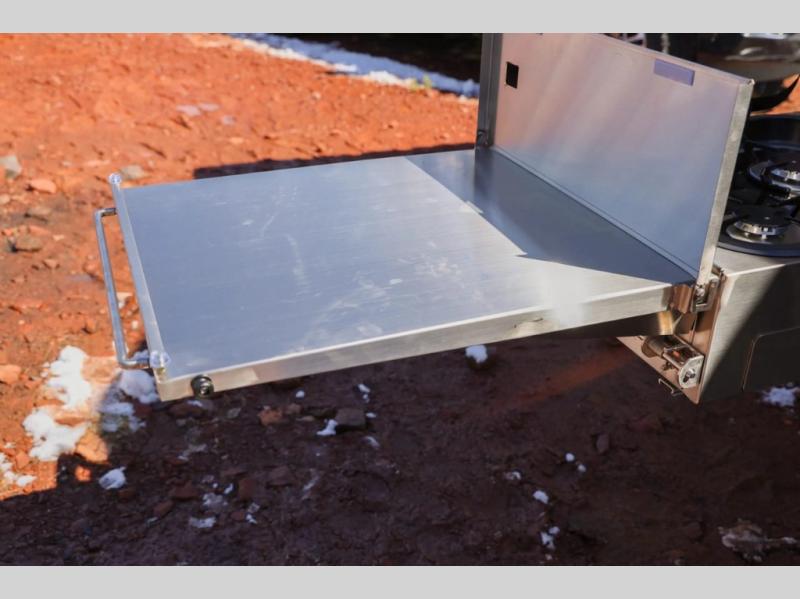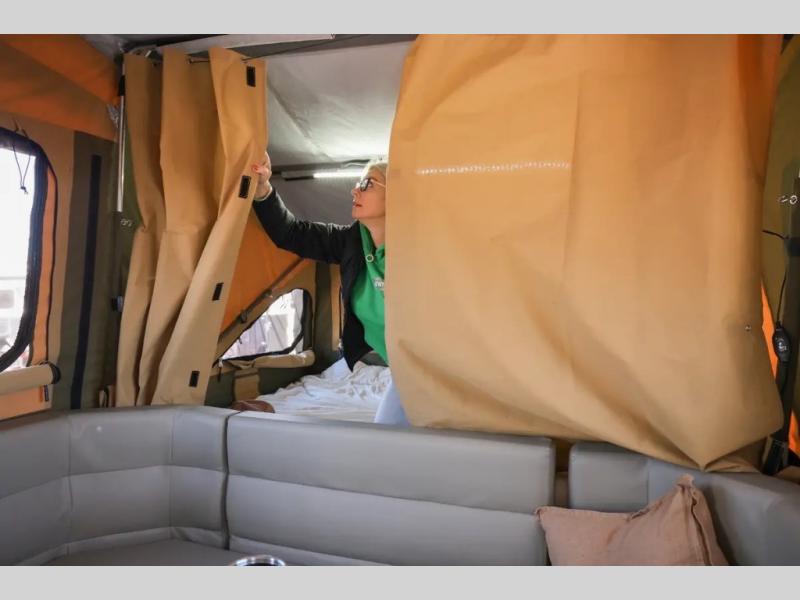 The Robson XTT off-road pop-up camper is built tough for adventure with a galvanized steel chassis, X-TRACK independent suspension, and Cruisemaster DO35 hitch. You can stay off-grid for longer periods of time thanks to the 200 watts of solar power, 300Ah of Renogy 12V lithium battery capacity, and Renogy REGO 3000W inverter. A removable, side-mounted storage rack will let you bring along extra camp gear, and the mesh screen stone guard includes a forward-facing mud flap for added protection. You'll also appreciate the cold weather design with insulated water lines, water tank heating pads, a Truma Combi 14,300 BTU/h furnace, and a Renogy battery with intelligent self-heating function!
