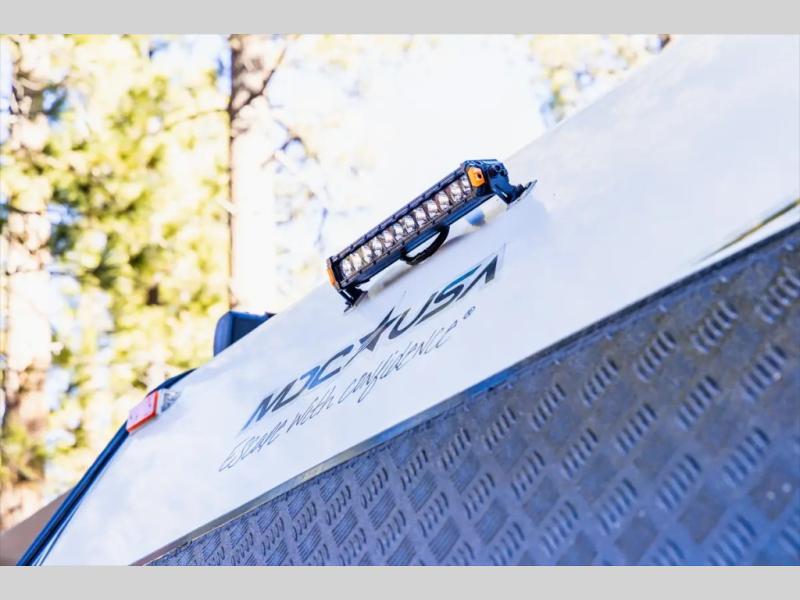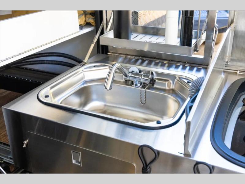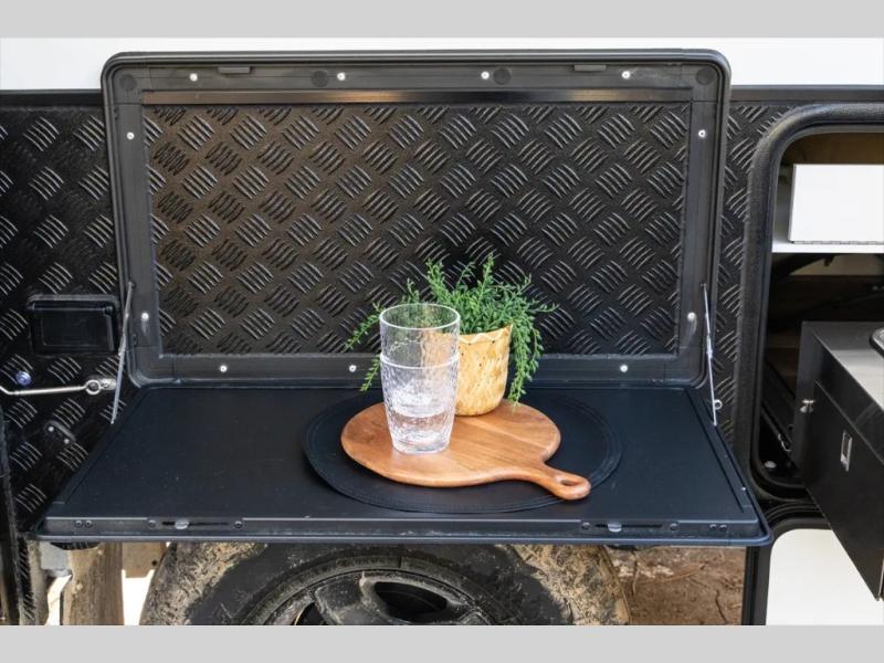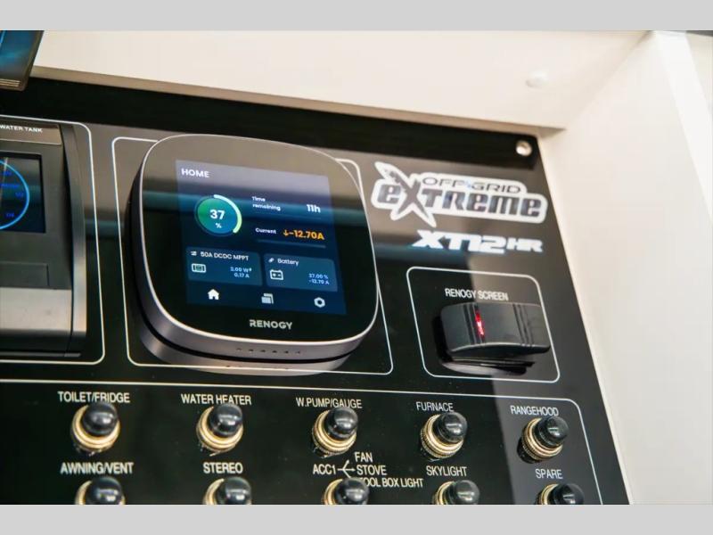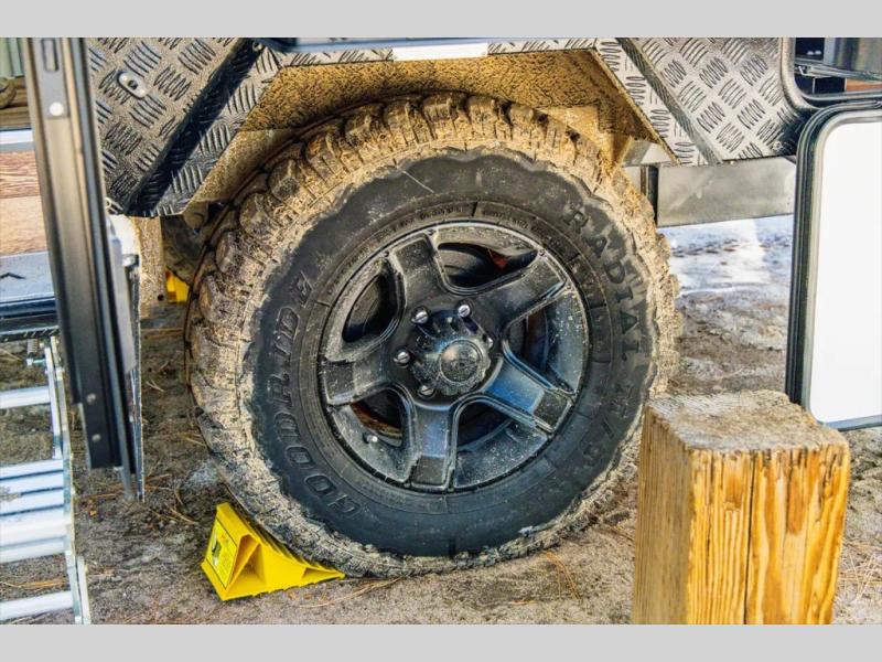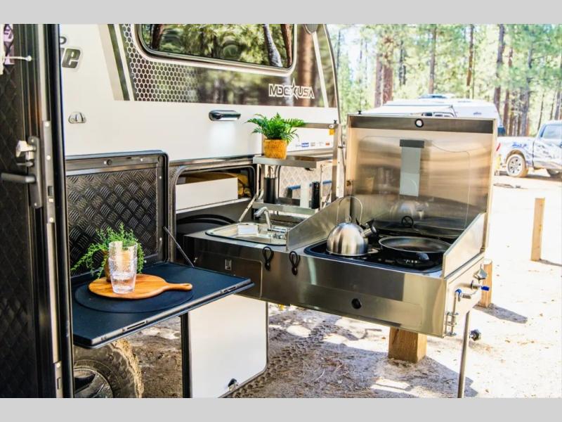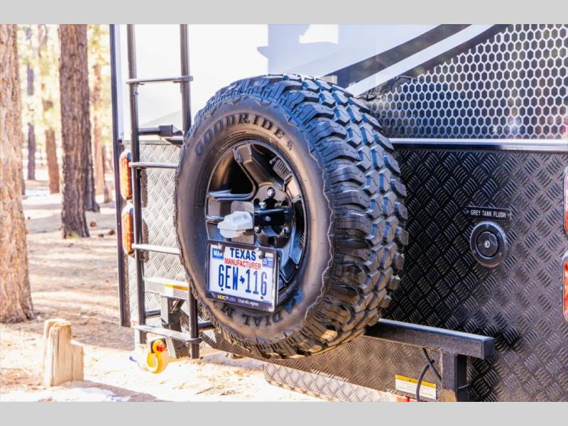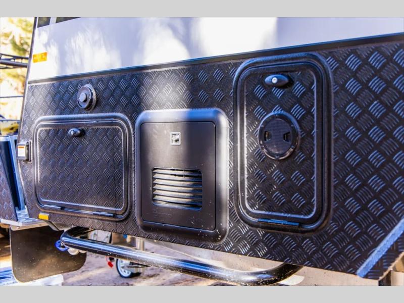 Go off the beaten path in this Off-Grid Extreme trailer! Don't let the compact design fool you; this unit is feature-packed with everything you need. There is an interior kitchen with a three burner propane cooktop and sink plus an exterior slide kitchen when the weather is nice out. The wet bath will provide a private space for you to freshen up each day, and there is even an exterior hot/cold shower with a wall-mounted shower tent for when you just want to rinse off quickly! You'll stay powered up by the internal and external outlets, the Renogy electrical system, and the impressive solar power system. This unit also includes a Cold Weather Pack design with water tank heating pads, a Truma VarioHeat 11,500 BTU/h furnace, dual pane windows and more features that will help extend your camping season!