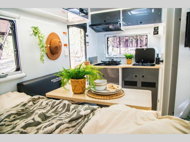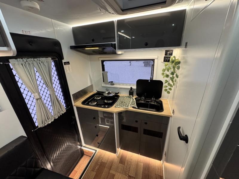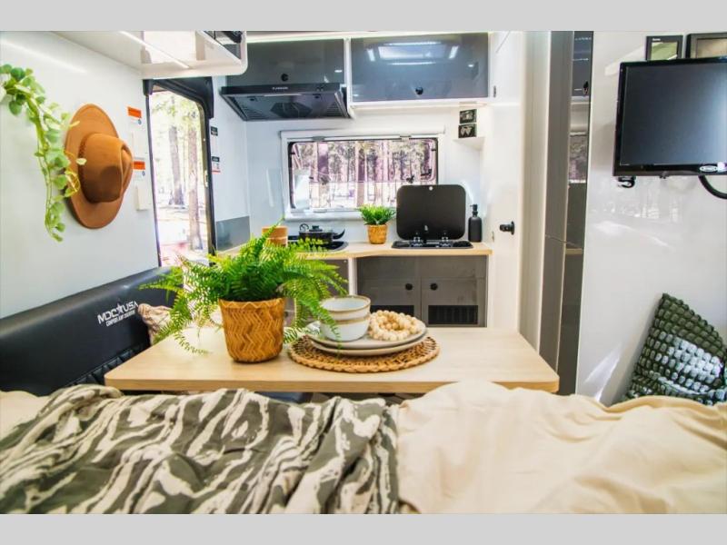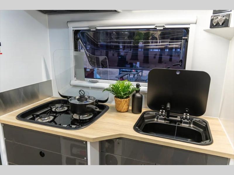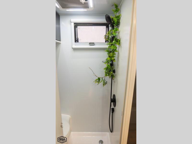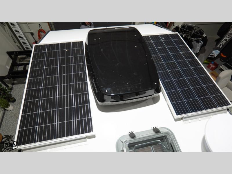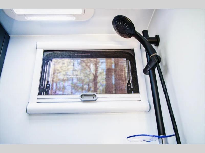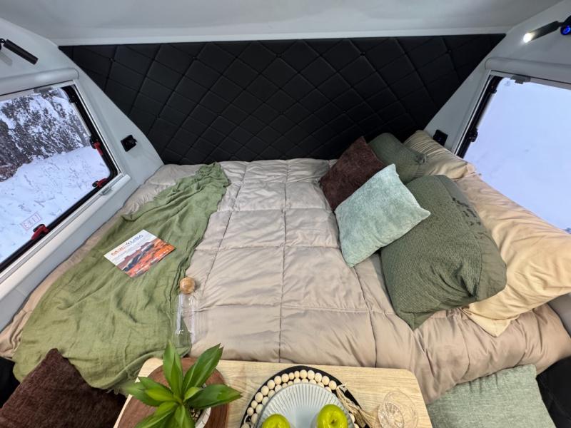 Go off the beaten path in this Off-Grid Extreme trailer! Don't let the compact design fool you; this unit is feature-packed with everything you need. There is an interior kitchen with a three burner propane cooktop and sink plus an exterior slide kitchen when the weather is nice out. The wet bath will provide a private space for you to freshen up each day, and there is even an exterior hot/cold shower with a wall-mounted shower tent for when you just want to rinse off quickly! You'll stay powered up by the internal and external outlets, the Renogy electrical system, and the impressive solar power system. This unit also includes a Cold Weather Pack design with water tank heating pads, a Truma VarioHeat 11,500 BTU/h furnace, dual pane windows and more features that will help extend your camping season!