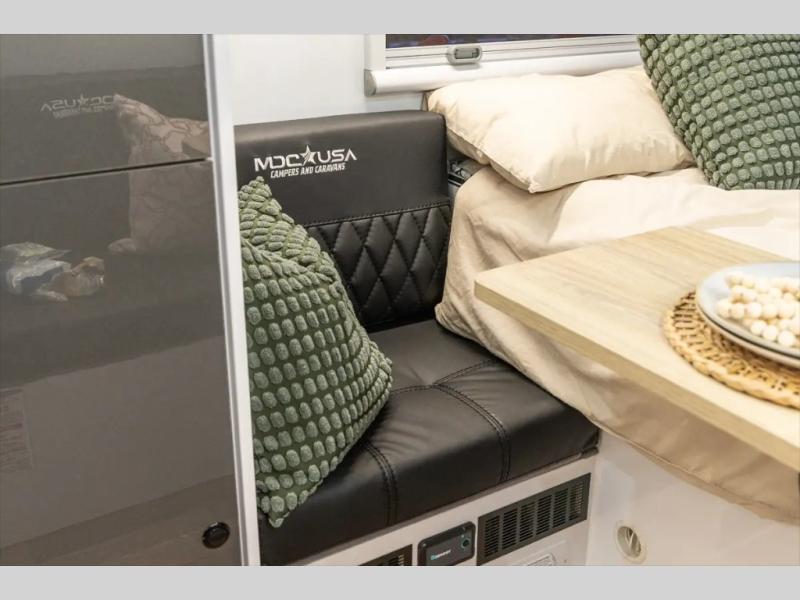 Each one of these MDC USA XT Expedition off-road trailers are packed with features while still priced at an affordable amount! They are built with a hot rolled rectangle galvanized steel tube frame and Cruisemaster DO35 hitch to handle the rugged terrain you throw their way. The solar panels allow you to go off the grid too. The independent suspension has dual shock absorbers and coil springs to help absorb the impact. You can keep your electronics charged with the power outlets and some models even come with external power outlets for added convenience. Come find your favorite one today!