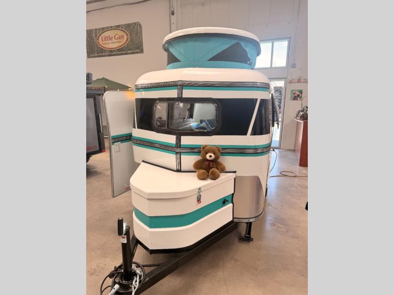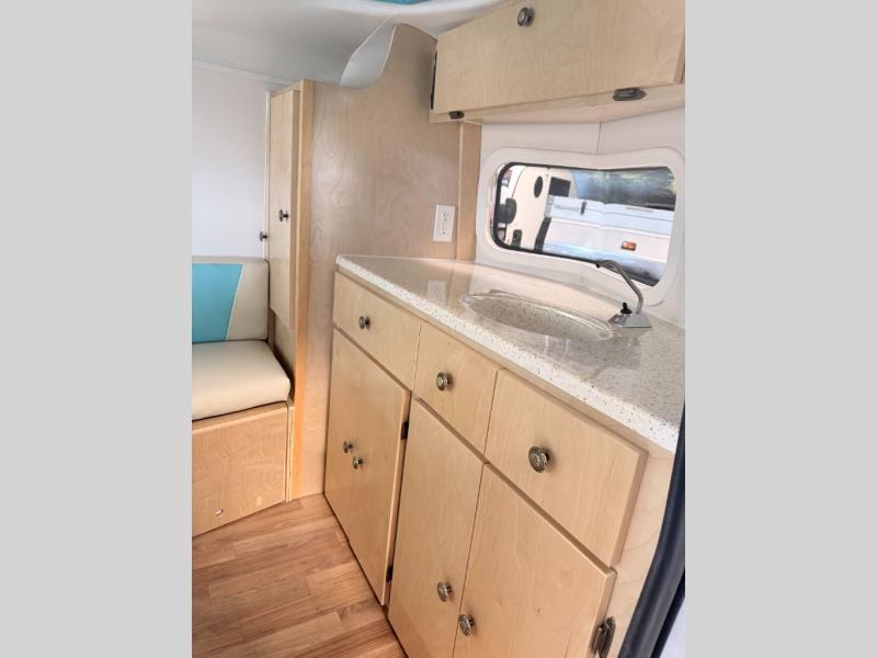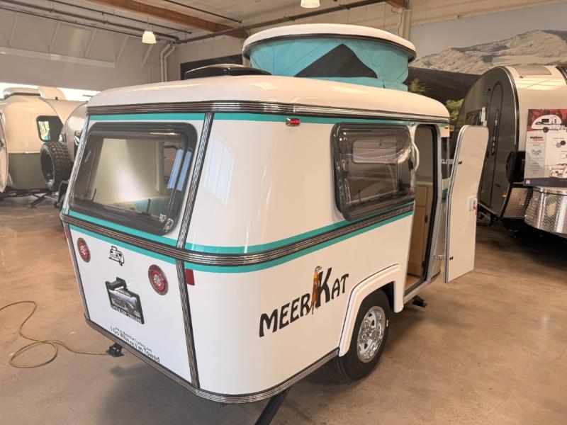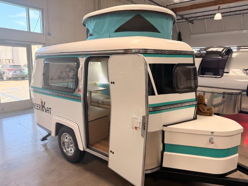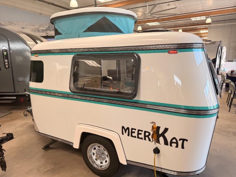 Bigger is not always better, and this little MeerKat will prove that to any interested camping couple that is looking to tow behind their everyday car. The MeerKat provides you a step up from tent camping where you can enjoy a dry place to sleep, eat, and store your things easily. And the included porta potty allows you to skip the public facilities in the middle of the night. The dinette table and wrap around seating can easily transform into a bed for a comfortable night's sleep. Three opening windows will allow you to enjoy fresh air circulating throughout both day and night. You will find under seating storage, plus several cabinets to tuck your things out of sight when not in use, and the front countertop provides a handy sink, plus a one burner camp stove is also available along with an icebox for your perishables. The MeerKat can easily be customized to suit your style of camping. You can add an optional awning, front storage box for more gear, a refrigerator, or induction cooktop, plus more. It's time to check this tiny camper out!