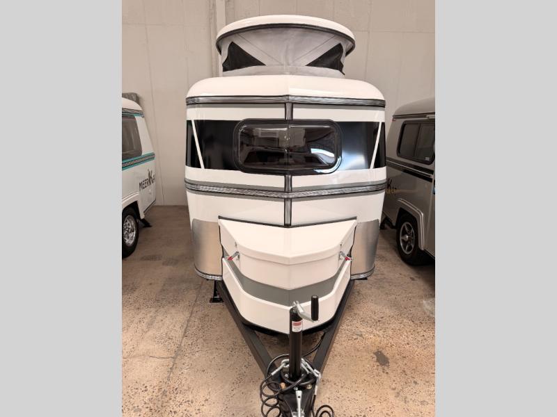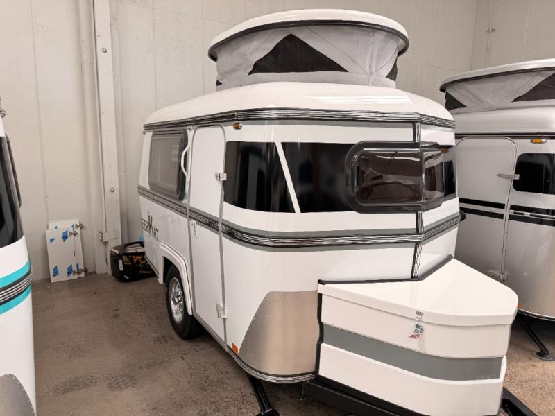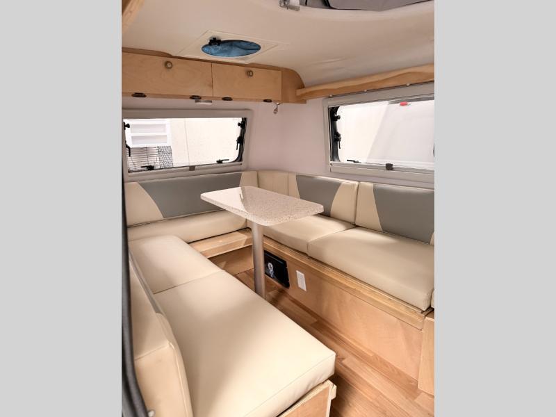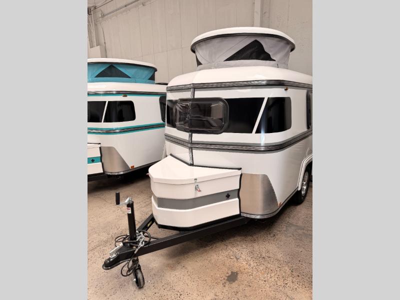 Bigger is not always better, and this little MeerKat will prove that to any interested camping couple that is looking to tow behind their everyday car. The MeerKat provides you a step up from tent camping where you can enjoy a dry place to sleep, eat, and store your things easily. And the included porta potty allows you to skip the public facilities in the middle of the night. The dinette table and wrap around seating can easily transform into a bed for a comfortable night's sleep. Three opening windows will allow you to enjoy fresh air circulating throughout both day and night. You will find under seating storage, plus several cabinets to tuck your things out of sight when not in use, and the front countertop provides a handy sink, plus a one burner camp stove is also available along with an icebox for your perishables. The MeerKat can easily be customized to suit your style of camping. You can add an optional awning, front storage box for more gear, a refrigerator, or induction cooktop, plus more. It's time to check this tiny camper out!