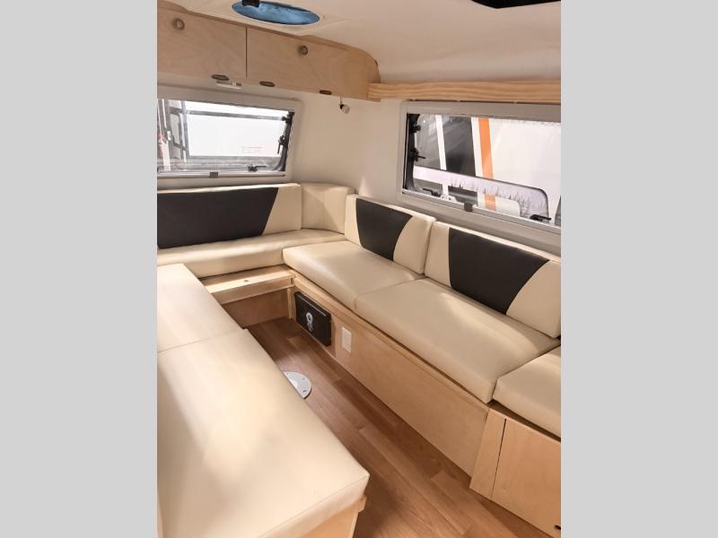 Bigger is not always better, and this little MeerKat will prove that to any interested camping couple that is looking to tow behind their everyday car. The MeerKat provides you a step up from tent camping where you can enjoy a dry place to sleep, eat, and store your things easily. And the included porta potty allows you to skip the public facilities in the middle of the night. The dinette table and wrap around seating can easily transform into a bed for a comfortable night's sleep. Three opening windows will allow you to enjoy fresh air circulating throughout both day and night. You will find under seating storage, plus several cabinets to tuck your things out of sight when not in use, and the front countertop provides a handy sink, plus a one burner camp stove is also available along with an icebox for your perishables. The MeerKat can easily be customized to suit your style of camping. You can add an optional awning, front storage box for more gear, a refrigerator, or induction cooktop, plus more. It's time to check this tiny camper out!