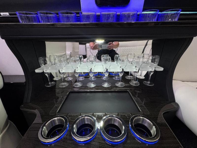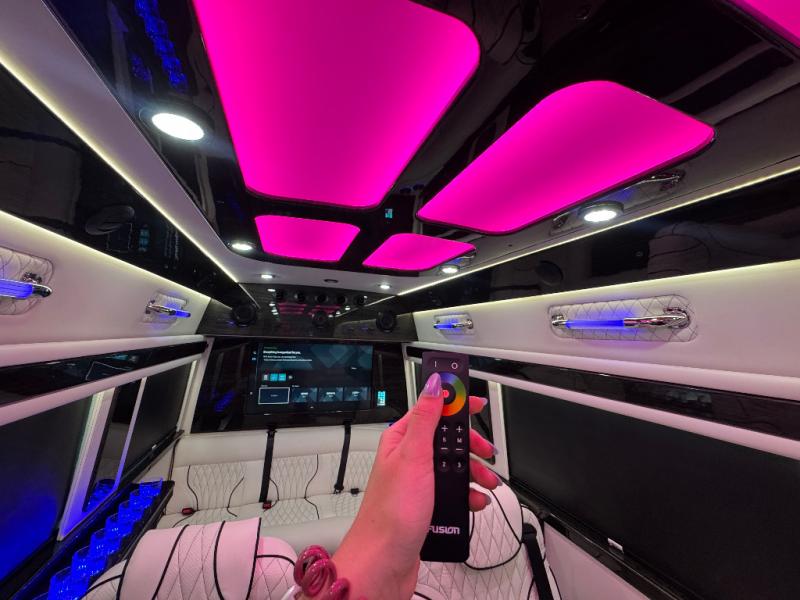 - Rear Entertainment System: Dual large HD screens integrated into the cabin for entertainment, presentations, or video conferencing.