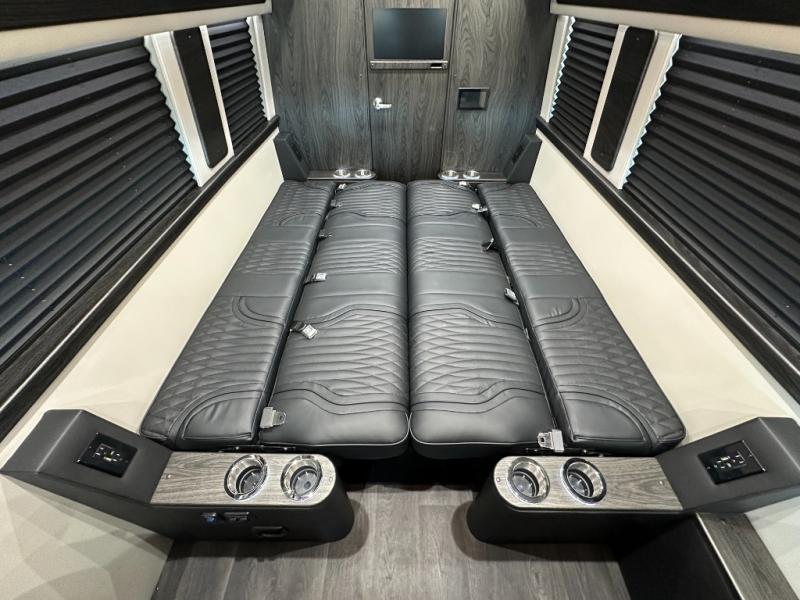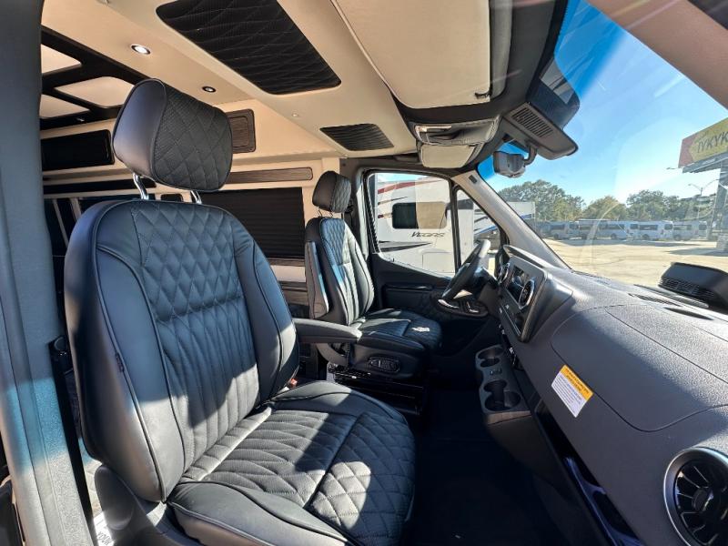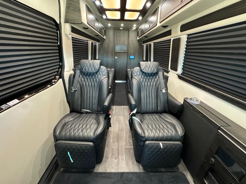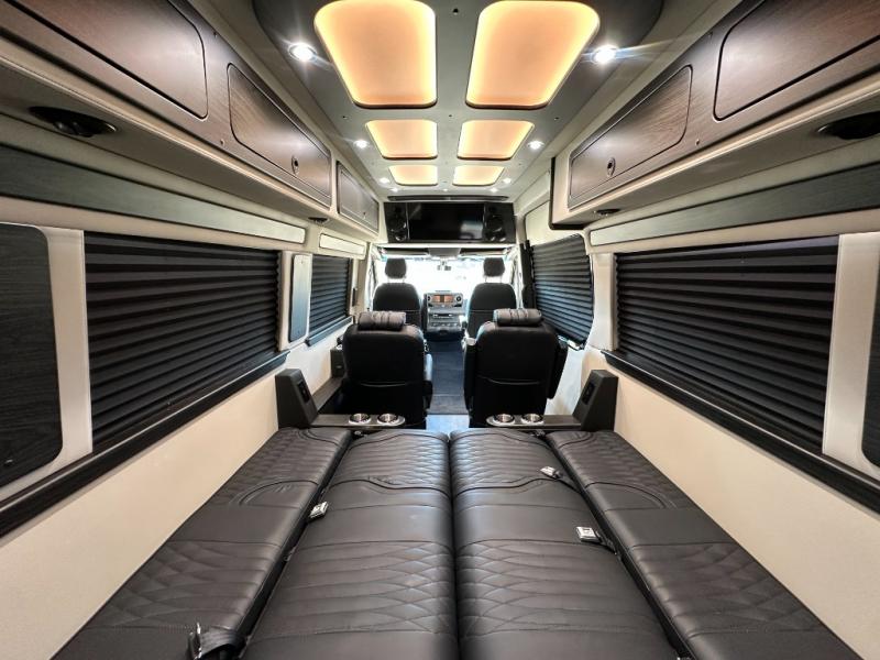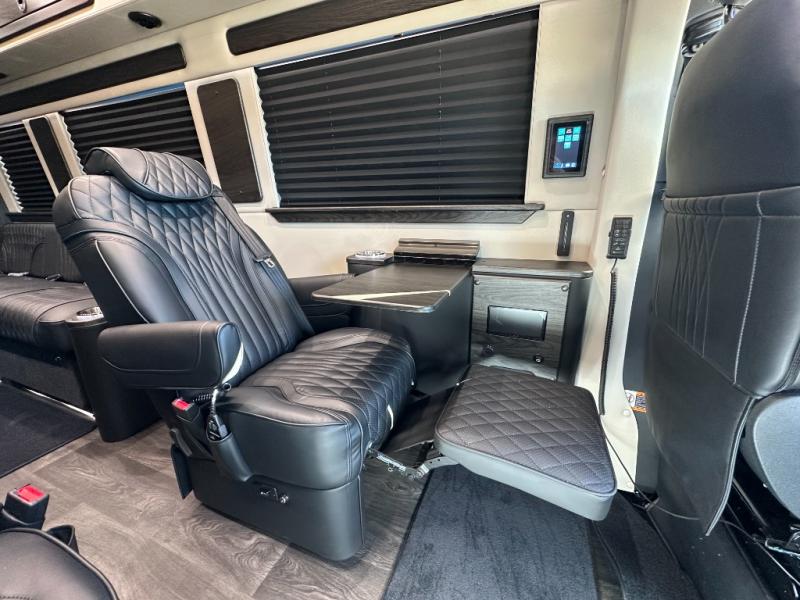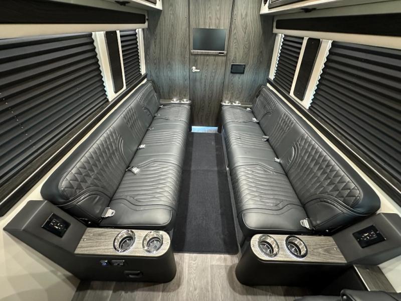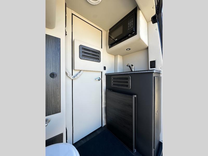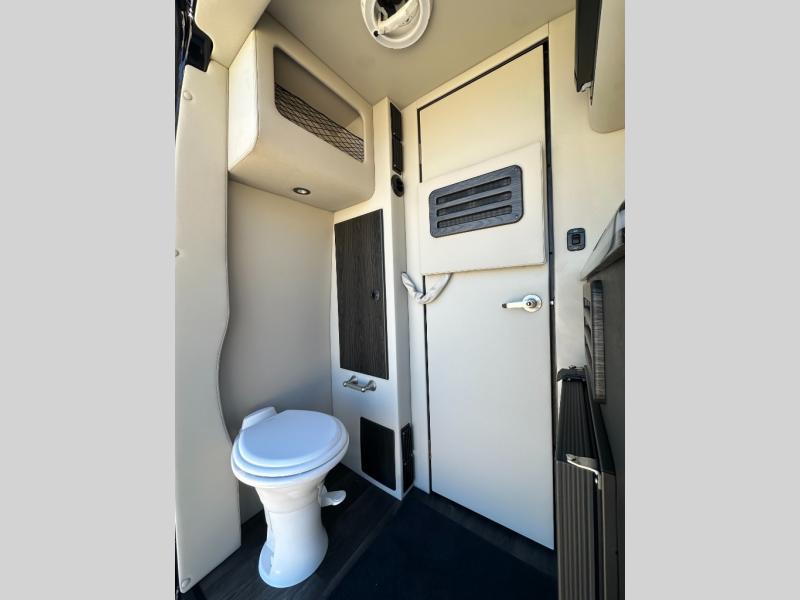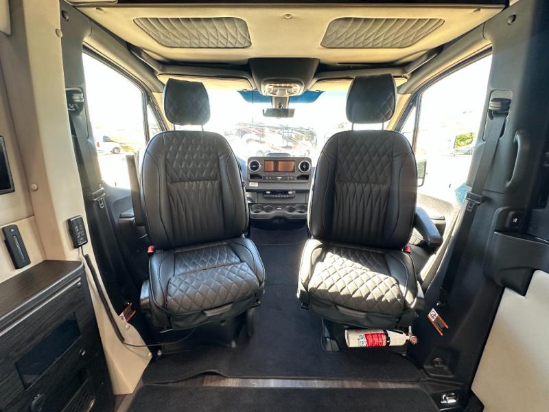 Load up the family or your group of friends in this Day Cruiser Class B diesel van which includes four captain's chairs and two sofa/foldout beds with a total of ten seatbelts. Now imagine where everyone will sit while enjoying the luxurious interior, the comfortable seating, and the beautiful highway scenery. Once at your destination, you can all watch movies and shows on the LED HDTV for some down time and eat snacks and meals cooked in the microwave. Don't forget about the convenient private toilet room with sink. There is also a refrigerator beneath the sink for cold drinks and snacks. Come see how this model will fit your traveling needs.