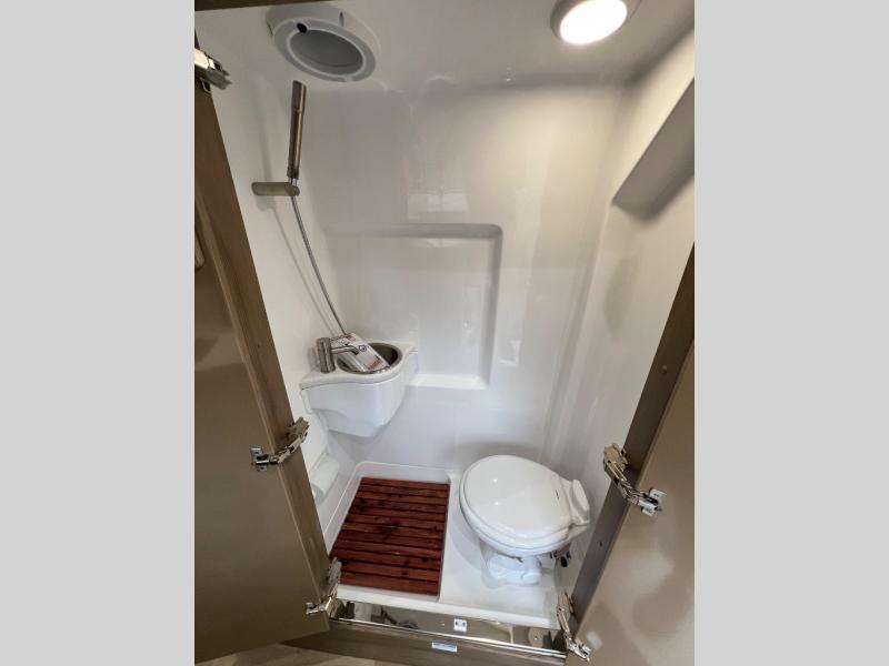 Forget about the way that you used to travel and begin traveling like a pro with this Ford Passage Class B gas motorhome! This coach has it all! You will find a wet bath with a retractable clothes line for staying clean, a rear power folding sofa bed for getting a full night of rest, a galley kitchen with an induction cooktop and stainless steel microwave for preparing easy meals, and a rear HDTV for entertaining yourself after a long day of traveling. Some of the other additions that are sure to make your life easier are the pull-out pantry below the countertop, the cab swivel seats, the climate controlled roof fan, and more!