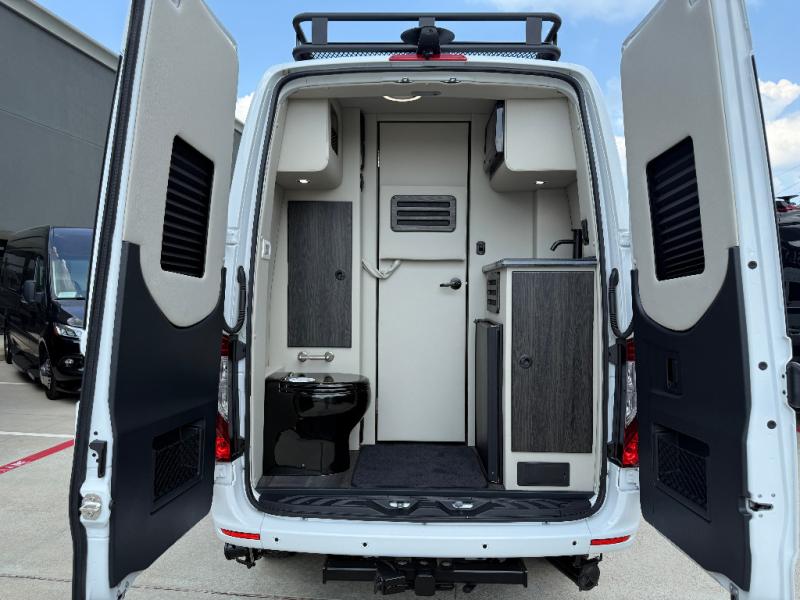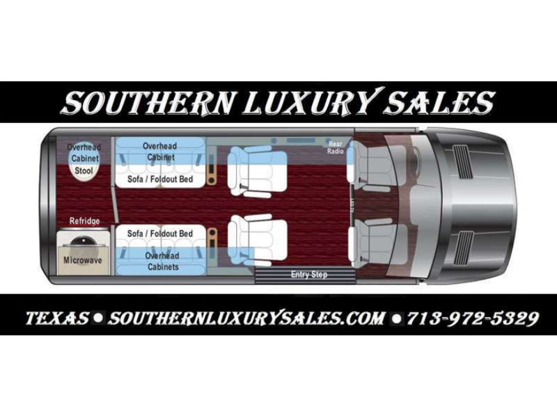 Just imagine you and seven others traveling to a local tournament or festival with this Daycruiser 144 Class B diesel van. This coach will safely carry everyone in comfort with the Maybach-style seating. Two people can even take a nap on the sofa/foldout beds while the others enjoy the great outdoors once you have reached your destination. The passengers may decide to watch the LED HDTV and listen to the movie through the wireless head phone system. Someone can even heat up soup or leftovers in the overhead 110V microwave and grab a drink from the refrigerator. And the rear wall entry door offers more safety and convenience, so take a look today!