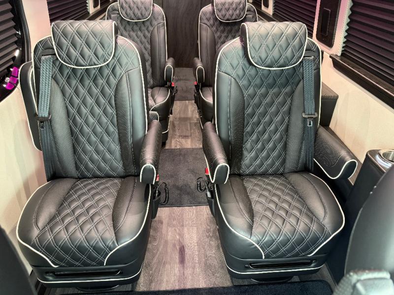 Load up the family or your group of friends in this Daycrusier Class B diesel van which includes six captain's chairs and two sofa/foldout beds with a total of ten seatbelts. Now imagine where everyone will sit while enjoying the luxurious interior, the comfortable seating, and the beautiful highway scenery. Once at your destination, you can all watch movies and shows on the LED HDTV for some down time and eat snacks and meals cooked in the 110V microwave. Your guests will surely enjoy using the wireless head phone system while relaxing on the Maybach-style seating. Don't forget about the convenient private toilet room with sink. There is also a refrigerator beneath the sink for cold drinks and snacks. Come see how this model will fit your traveling needs.