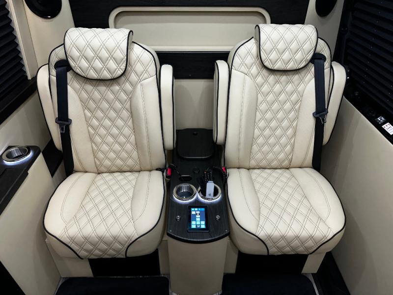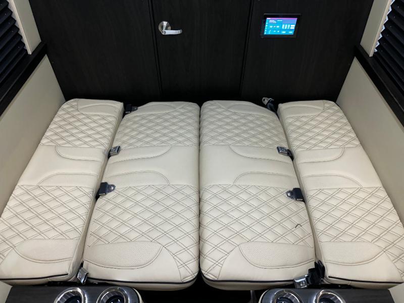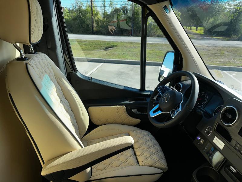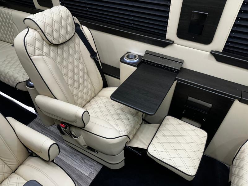 Load up the family or your group of friends in this Daycrusier Class B diesel van which includes six captain's chairs and two sofa/foldout beds with a total of ten seatbelts. Now imagine where everyone will sit while enjoying the luxurious interior, the comfortable seating, and the beautiful highway scenery. Once at your destination, you can all watch movies and shows on the LED HDTV for some down time and eat snacks and meals cooked in the 110V microwave. Your guests will surely enjoy using the wireless head phone system while relaxing on the Maybach-style seating. Don't forget about the convenient private toilet room with sink. There is also a refrigerator beneath the sink for cold drinks and snacks. Come see how this model will fit your traveling needs.