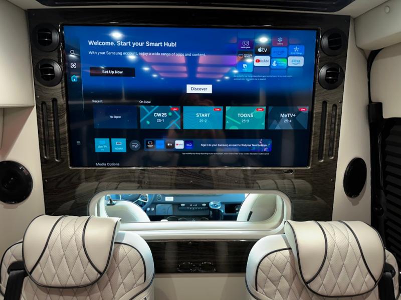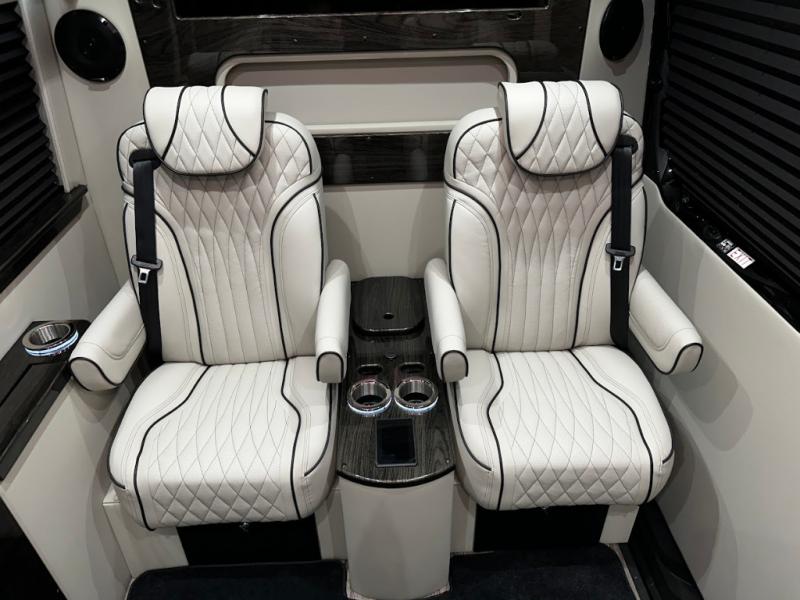 Load up the family or your group of friends in this Daycrusier Class B diesel van which includes six captain's chairs and two sofa/foldout beds with a total of ten seatbelts. Now imagine where everyone will sit while enjoying the luxurious interior, the comfortable seating, and the beautiful highway scenery. Once at your destination, you can all watch movies and shows on the LED HDTV for some down time and eat snacks and meals cooked in the 110V microwave. Your guests will surely enjoy using the wireless head phone system while relaxing on the Maybach-style seating. Don't forget about the convenient private toilet room with sink. There is also a refrigerator beneath the sink for cold drinks and snacks. Come see how this model will fit your traveling needs.