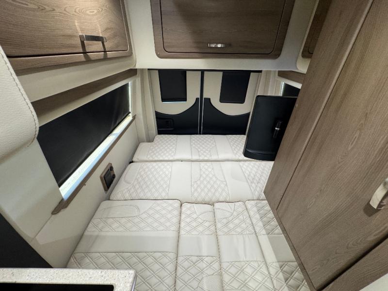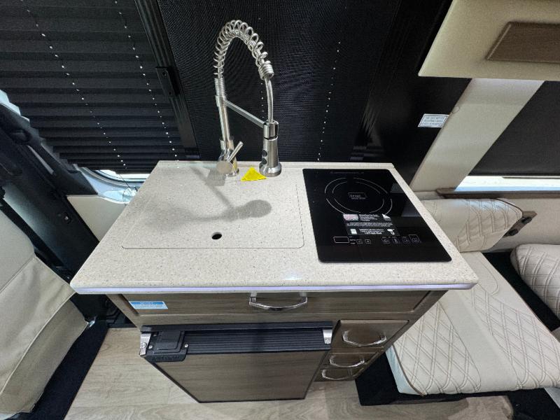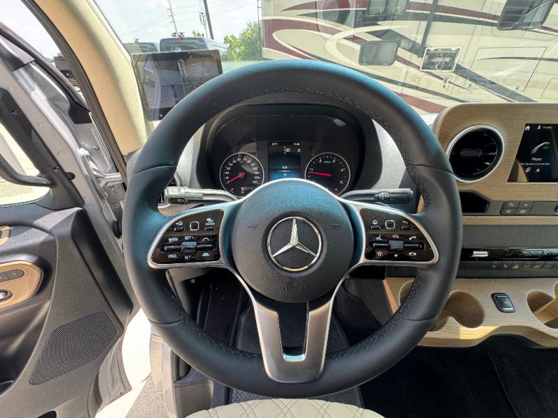 With any Midwest Automotive Passage 144 Class B diesel motorhome, you will appreciate the safety of the Mercedes-Benz chassis on a 19' platform and the performance engineering of a diesel engine. Inside, you will find meticulous leather-clad upholstery and polished wood veneers throughout, as well as a cabin full of appliances and electronics that offer convenience and luxury. It's time to live in luxury when moving down the road or at your favorite destination in a Passage 144 coach!