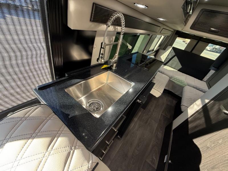 Each Passage Class B diesel motorhome begins with the safety and performance engineering of the Mercedes-Benz Sprinter and includes luxury and convenience throughout. There is custom seating inside, along with hydro-graphed wood cabinetry, composite seamless flooring, and more comforts. The rooftop solar charging system, house battery, and Quite Tech 2.5kW propane generator will keep your adventures powered up. Each coach also includes a power awning with LED lights, an all-in-one utility bay, and rear backup camera system to make parking easier than ever. There are also RWD and AWD drivetrains available; see dealer for more details!