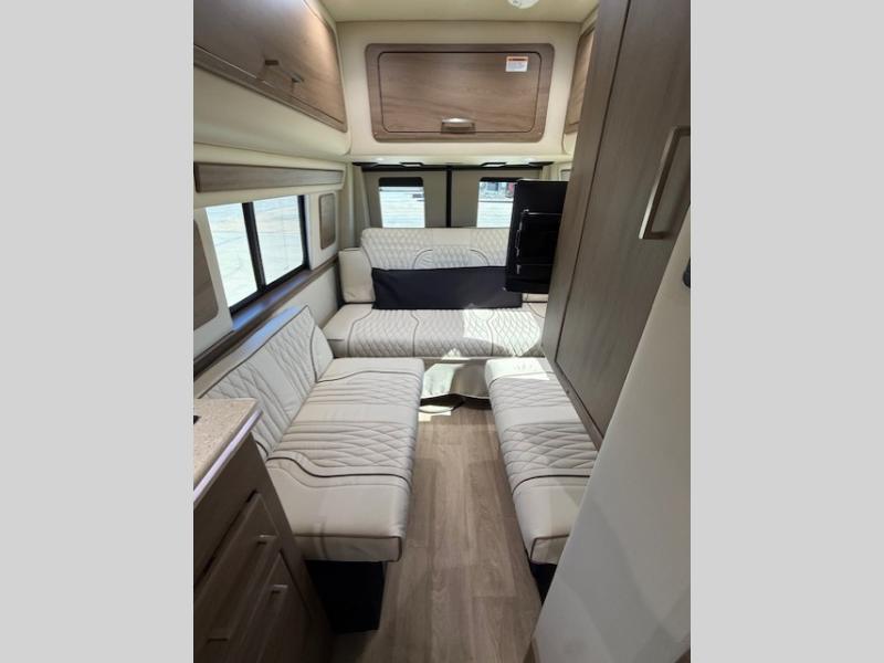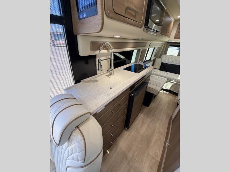 Each Passage Class B diesel motorhome begins with the safety and performance engineering of the Mercedes-Benz Sprinter and includes luxury and convenience throughout. There is custom seating inside, along with hydro-graphed wood cabinetry, composite seamless flooring, and more comforts. The rooftop solar charging system, house battery, and Quite Tech 2.5kW propane generator will keep your adventures powered up. Each coach also includes a power awning with LED lights, an all-in-one utility bay, and rear backup camera system to make parking easier than ever. There are also RWD and AWD drivetrains available; see dealer for more details!