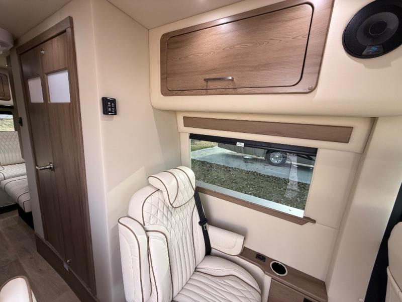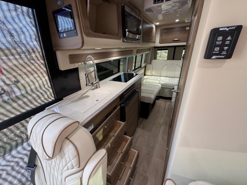 Each Passage Class B diesel motorhome begins with the safety and performance engineering of the Mercedes-Benz Sprinter and includes luxury and convenience throughout. There is custom seating inside, along with hydro-graphed wood cabinetry, composite seamless flooring, and more comforts. The rooftop solar charging system, house battery, and Quite Tech 2.5kW propane generator will keep your adventures powered up. Each coach also includes a power awning with LED lights, an all-in-one utility bay, and rear backup camera system to make parking easier than ever. There are also RWD and AWD drivetrains available; see dealer for more details!