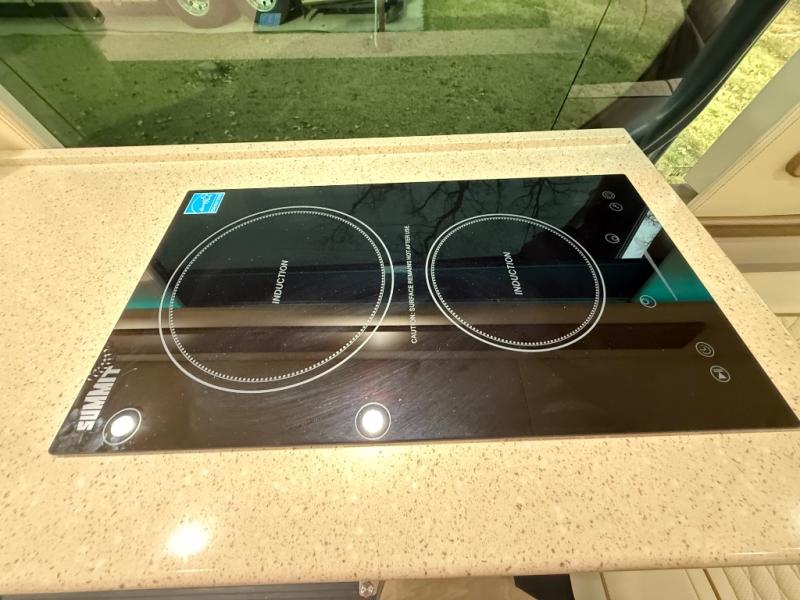 This Passage Class B diesel motorhome will have you daydreaming about your next trip with your family. Just imagine relaxing on the rear power lounge while planning your activities for the day. You might have decided to leave the removable lagun table in the back location so that everyone could eat lunch that was made in the galley. There is a wet bath to keep everyone clean and ready for the next day, and the power lounge becomes a place to sleep two when needed. The dual burner induction cooktop and microwave oven will let you make meals while on the go, and the 3.5 cu. ft. will keep your perishables fresh!