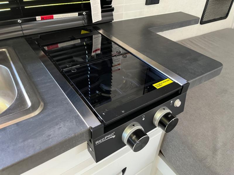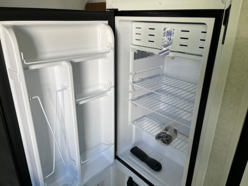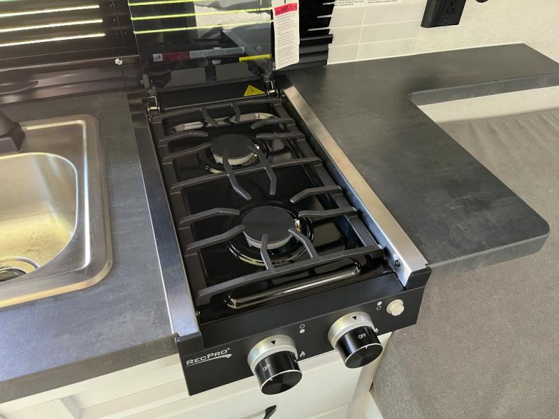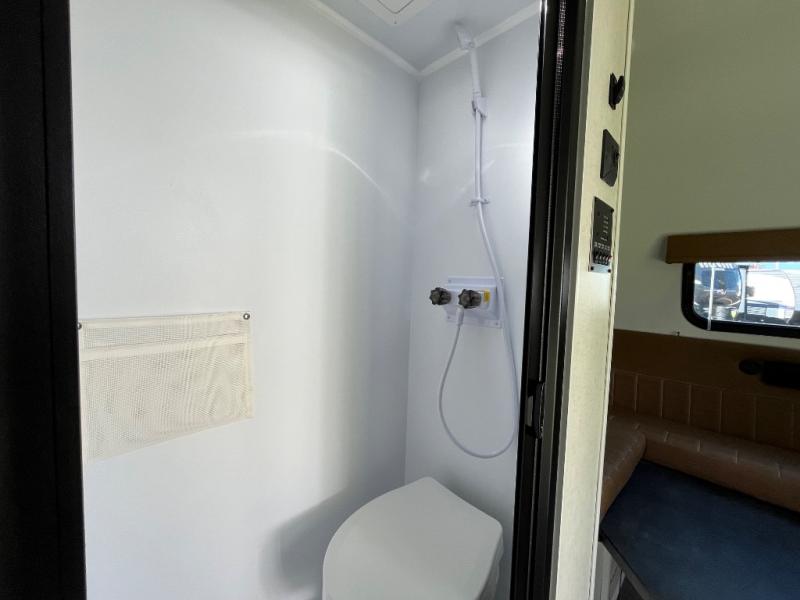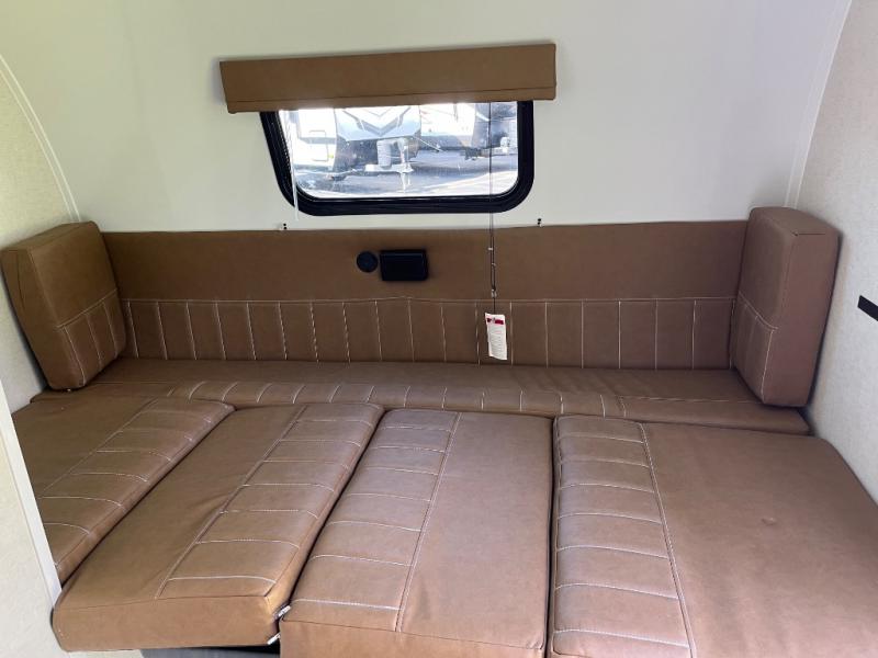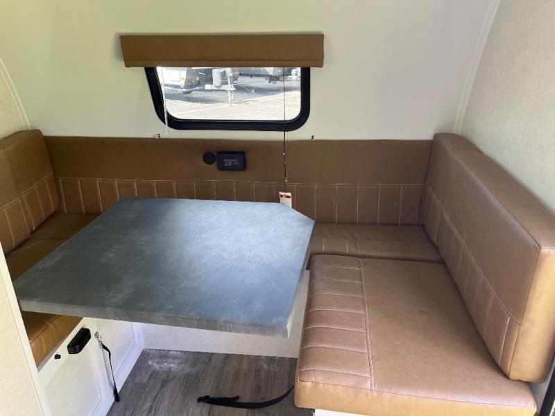 If you're looking for a teardrop trailer with a little more space, check out this Big Buggy BB14! There is a front U-shaped dinette that can convert to cozy sleeping space, a two burner stove, plus a large 12V refrigerator. You can clean up each day in the wet bath that includes a two way bath vent fan plus a Dometic toilet. The exterior baggage door will keep all your gear secure, and the torsion axle will provide smooth towing from home to campground.