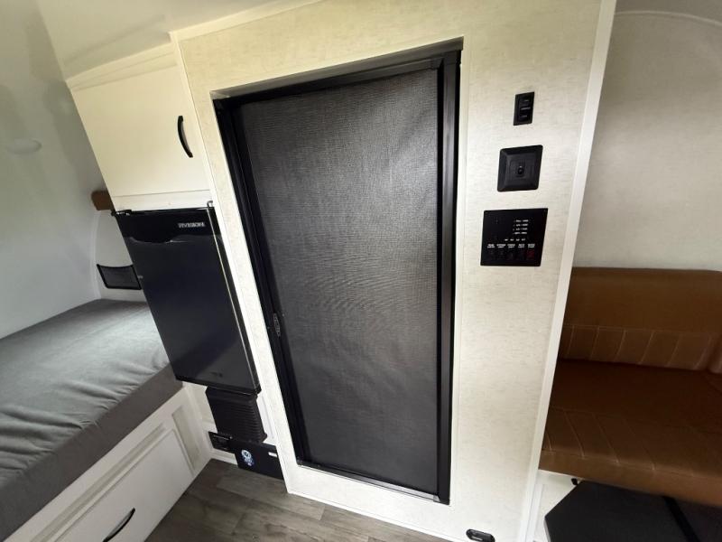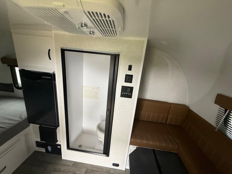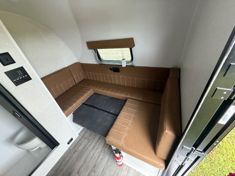 If you're looking for a teardrop trailer with a little more space, check out this Big Buggy BB14! There is a front U-shaped dinette that can convert to cozy sleeping space, a two burner stove, plus a large refrigerator. You can clean up each day in the wet bath that includes a two way bath vent fan plus a Dometic toilet. The exterior baggage door will keep all your gear secure, and the torsion axle will provide smooth towing from home to campground.
