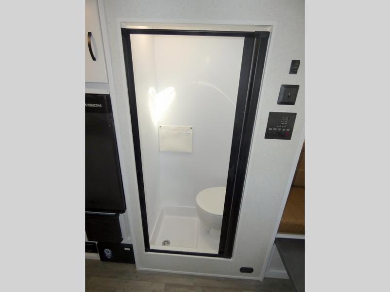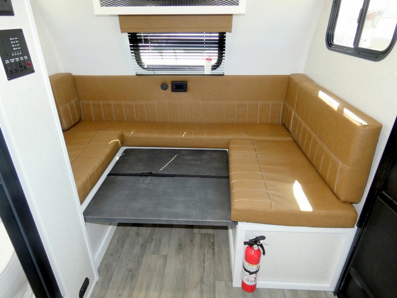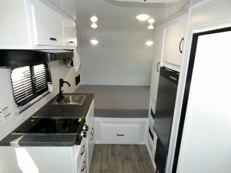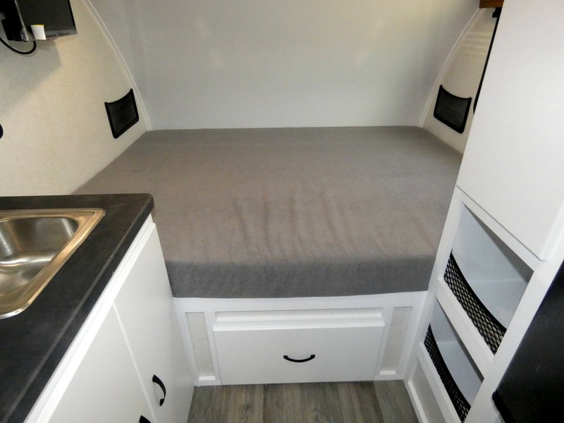 If you're looking for a teardrop trailer with a little more sleeping space, check out this Big Buggy BB16! There is a front U-shaped dinette that can convert to cozy sleeping space, along with a 78" x 36" upper bunk, a two burner stove, and a large refrigerator for food. You can clean up each day in the wet bath that includes a two way bath vent fan plus a Dometic toilet. The exterior baggage door will keep all your gear secure, and the torsion axle will provide smooth towing from home to campground.