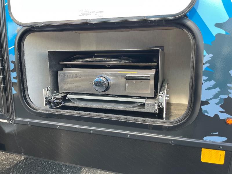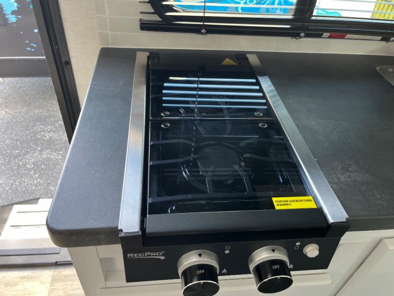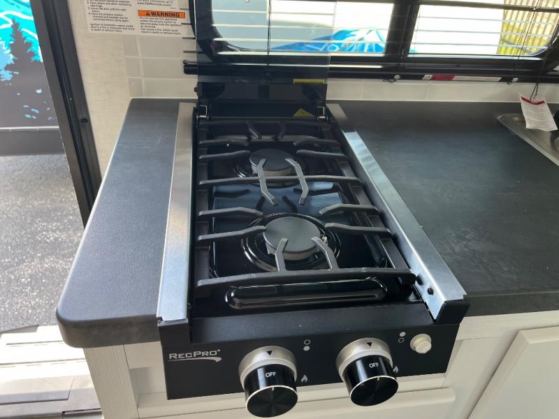 If you're looking for a teardrop trailer with a little more sleeping space, check out this Big Buggy BB16! There is a front U-shaped dinette that can convert to cozy sleeping space, along with a 78" x 36" upper bunk, a two burner stove, and a large refrigerator for food. You can clean up each day in the wet bath that includes a two way bath vent fan plus a Dometic toilet. The exterior baggage door and front exterior baggage door will keep all your gear secure, and the torsion axle will provide smooth towing from home to campground.