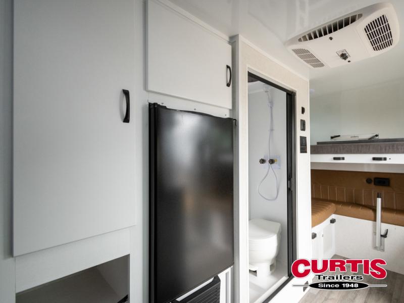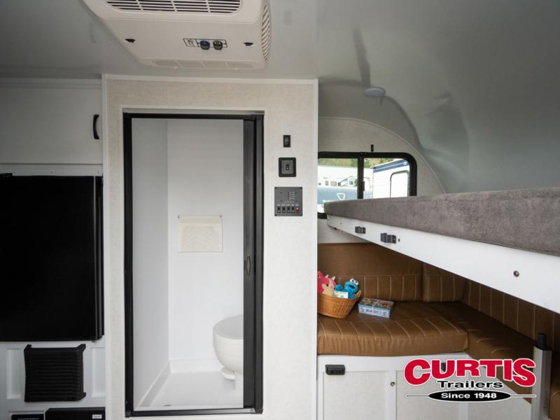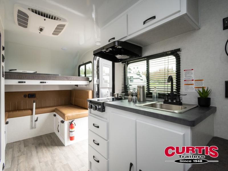 If you're looking for a teardrop trailer with a little more sleeping space, check out this Big Buggy BB16! There is a front U-shaped dinette that can convert to cozy sleeping space, along with a 78" x 36" upper bunk, a two burner stove, and a large refrigerator for food. You can clean up each day in the wet bath that includes a two way bath vent fan plus a Dometic toilet. The exterior baggage door will keep all your gear secure, and the torsion axle will provide smooth towing from home to campground.