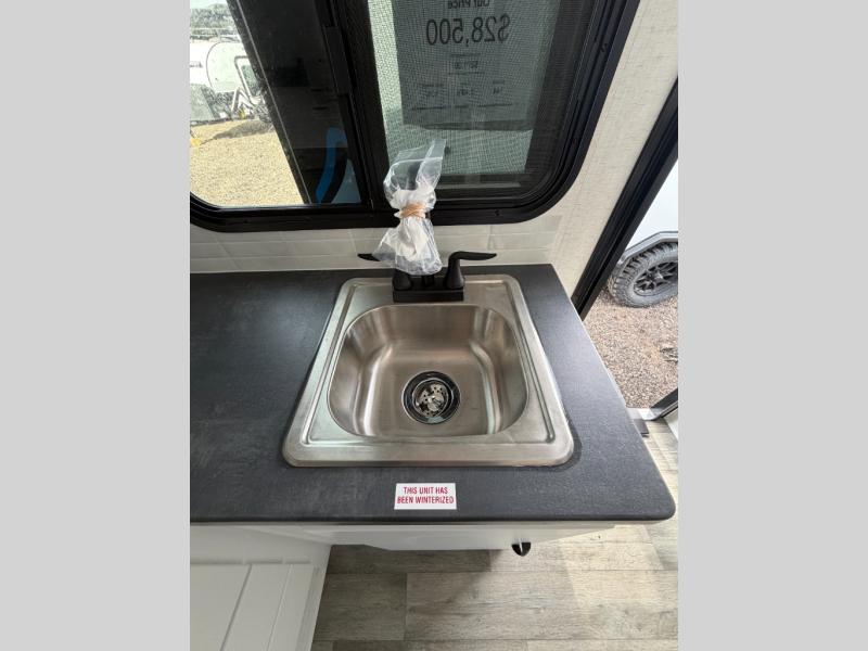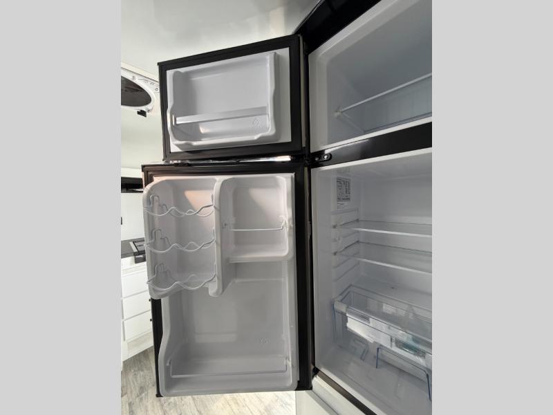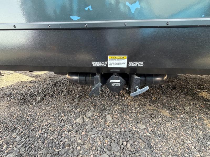 You'll love camping in this spacious trailer that can sleep up to three people. There is a two-burner stove with a cover so you can cook meals and enjoy extra counter space when you need it. The large refrigerator/freezer will let you keep your food fresh, and the stainless-steel sink will make clean up easier than ever. The dinette/bed will give you a place to dine together, and you're sure to appreciate the flex-bed system that gives you the option for a 78" x 83" bed, two twin-size beds, or a full-size bed! This trailer also includes a dry bathroom, a feature usually unheard of in teardrop trailers!