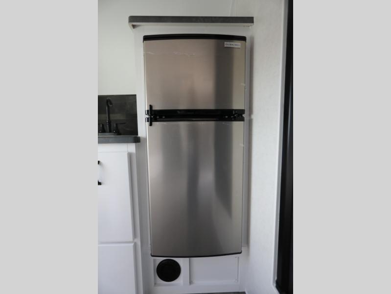 Make every outdoor adventure count with a Hopper travel trailer or toy hauler travel trailer by Modern Buggy RV! These lightweight units are built to last with a custom steel frame and Azdel walls for added durability. You'll find all the necessities needed inside, such as a 13.5k BTU A/C, a 19k BTU furnace, and a Fogatti on-demand water heater for hot showers after trail riding or hiking. The Hopper is off-road capable with all-terrain tires, electric brakes, and 14" ground clearance. You will also enjoy the black roller shades inside, along with White Sands cabinetry and USB stations to keep your gadgets charged and ready to go!