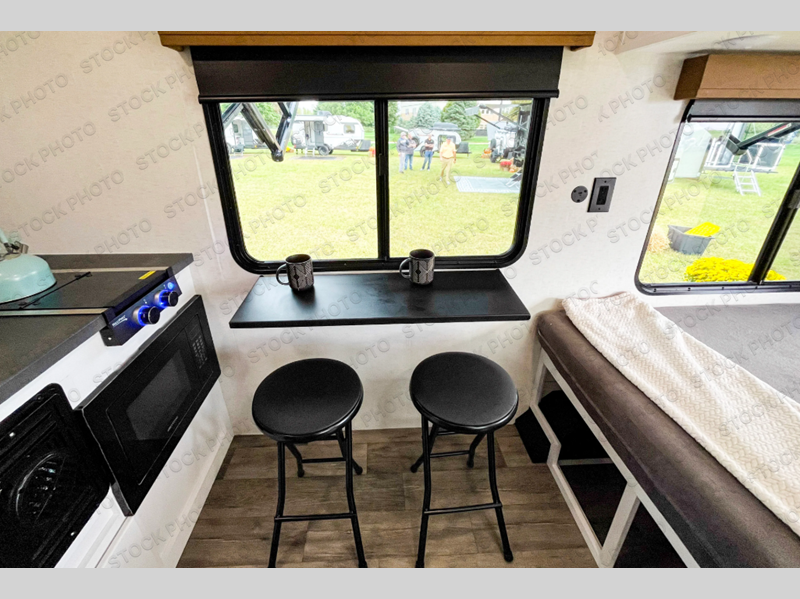 You'll love time at the campground in this lightweight travel trailer! Everything you need for an enjoyable experience has been provided, such as a functional kitchen with a two-burner stove and 12V refrigerator to cook and store food, plus a convenient wet bath so you can freshen up each day! A 68" jack knife sofa with a 68" x 31" bed/bunk above will provide sleeping space for guests, while you take the 45" x 74" bed. There are overhead cabinets for your things, along with two pantries for dry goods, snacks and more!