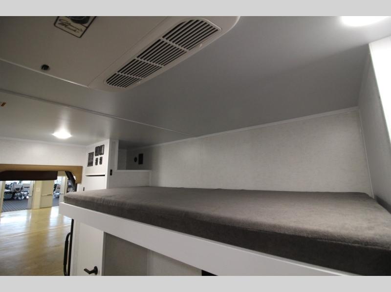 You'll love time at the campground in this lightweight travel trailer! Everything you need for an enjoyable experience has been provided, such as a functional kitchen with a two-burner stove and 12V refrigerator to cook and store food, plus a convenient wet bath so you can freshen up each day! A 68" jack knife sofa with a 68" x 31" bed/bunk above will provide sleeping space for guests, while you take the 45" x 74" bed. There are overhead cabinets for your things, along with two pantries for dry goods, snacks and more!