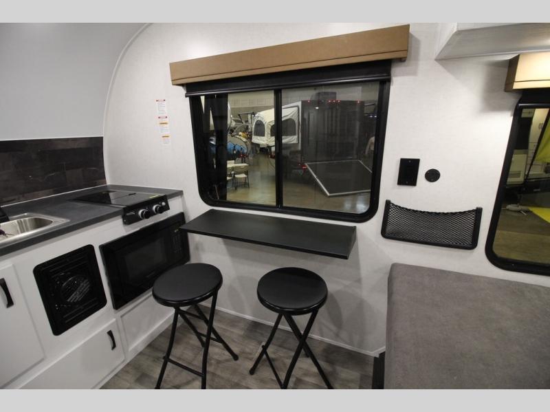 You'll love time at the campground in this lightweight travel trailer! Everything you need for an enjoyable experience has been provided, such as a functional kitchen with a two-burner stove and 12V refrigerator to cook and store food, plus a convenient wet bath so you can freshen up each day! A 68" jack knife sofa with a 68" x 31" bed/bunk above will provide sleeping space for guests, while you take the 45" x 74" bed. There are overhead cabinets for your things, along with two pantries for dry goods, snacks and more!