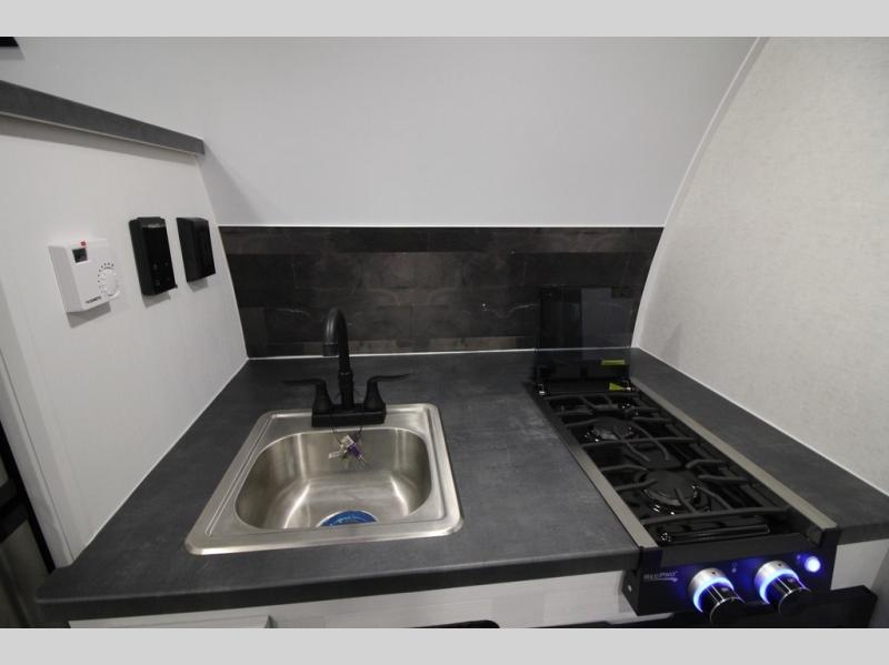 Make every outdoor adventure count with a Hopper travel trailer or toy hauler travel trailer by Modern Buggy RV! These lightweight units are built to last with a custom steel frame and Azdel walls for added durability. You'll find all the necessities needed inside, such as a 13.5k BTU A/C, a 19k BTU furnace, and a Fogatti on-demand water heater for hot showers after trail riding or hiking. The Hopper is off-road capable with all-terrain tires, electric brakes, and 14" ground clearance. You will also enjoy the black roller shades inside, along with White Sands cabinetry and USB stations to keep your gadgets charged and ready to go!