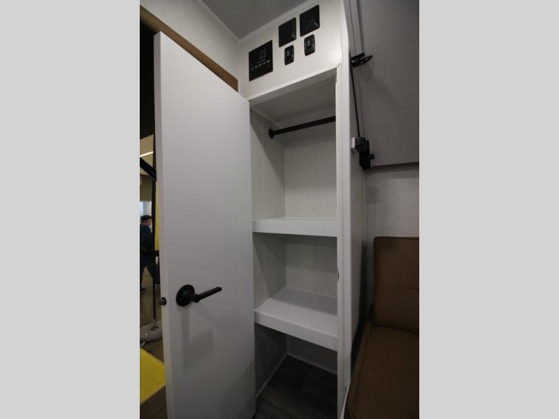 You'll love time at the campground in this lightweight travel trailer! Everything you need for an enjoyable experience has been provided, such as a functional kitchen with a two-burner stove and 12V refrigerator to cook and store food, plus a convenient wet bath so you can freshen up each day! A 68" jack knife sofa with a 68" x 31" bed/bunk above will provide sleeping space for guests, while you take the 45" x 74" bed. There are overhead cabinets for your things, along with two pantries for dry goods, snacks and more!