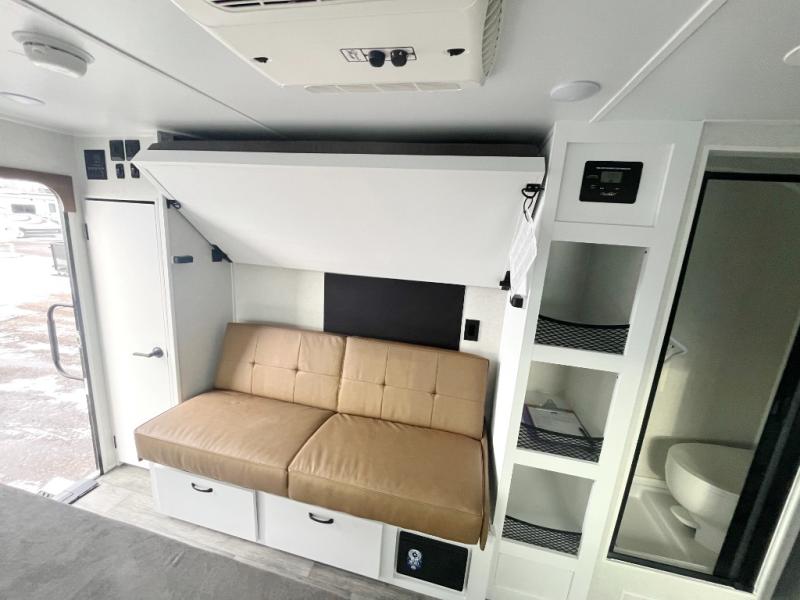 You'll love time at the campground in this lightweight travel trailer! Everything you need for an enjoyable experience has been provided, such as a functional kitchen with a two-burner stove and 12V refrigerator to cook and store food, plus a convenient wet bath so you can freshen up each day! A 68" jack knife sofa with a 68" x 31" bed/bunk above will provide sleeping space for guests, while you take the 45" x 74" bed. There are overhead cabinets for your things, along with two pantries for dry goods, snacks and more!