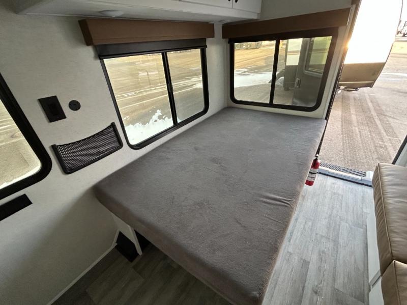 You'll love time at the campground in this lightweight travel trailer! Everything you need for an enjoyable experience has been provided, such as a functional kitchen with a two-burner stove and 12V refrigerator to cook and store food, plus a convenient wet bath so you can freshen up each day! A 68" jack knife sofa with a 68" x 31" bed/bunk above will provide sleeping space for guests, while you take the 45" x 74" bed. There are overhead cabinets for your things, along with two pantries for dry goods, snacks and more!