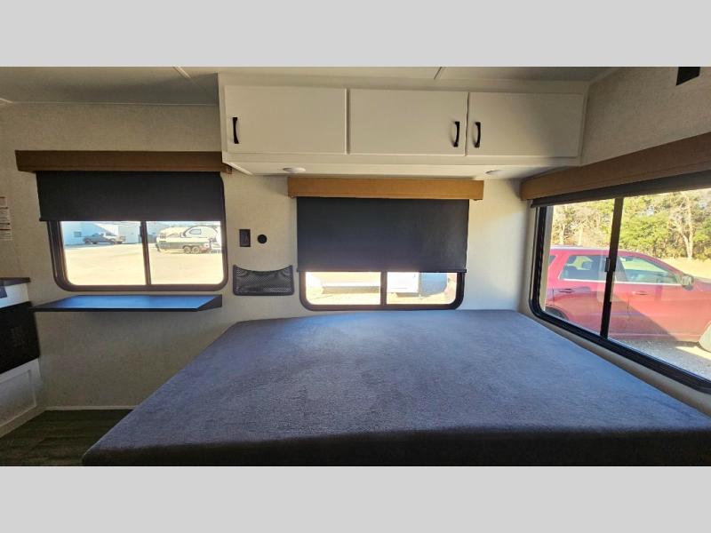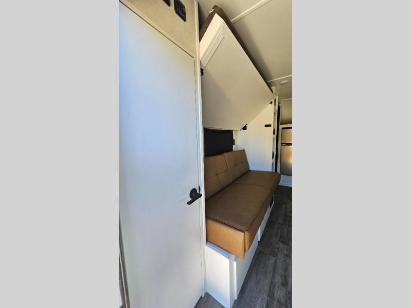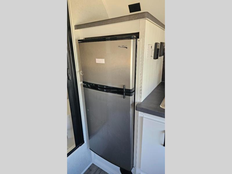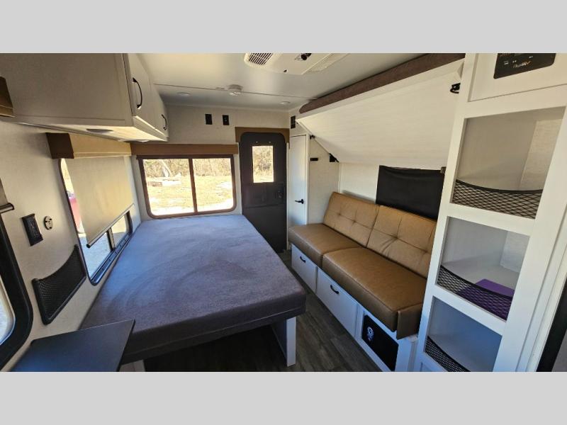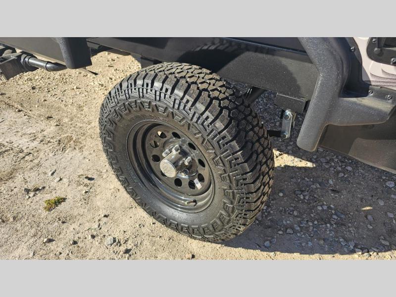 Make every outdoor adventure count with a Hopper travel trailer or toy hauler travel trailer by Modern Buggy RV! These lightweight units are built to last with a custom steel frame and Azdel walls for added durability. You'll find all the necessities needed inside, such as a 13.5k BTU A/C, a 19k BTU furnace, and a Fogatti on-demand water heater for hot showers after trail riding or hiking. The Hopper is off-road capable with all-terrain tires, electric brakes, and 14" ground clearance. You will also enjoy the black roller shades inside, along with White Sands cabinetry and USB stations to keep your gadgets charged and ready to go!