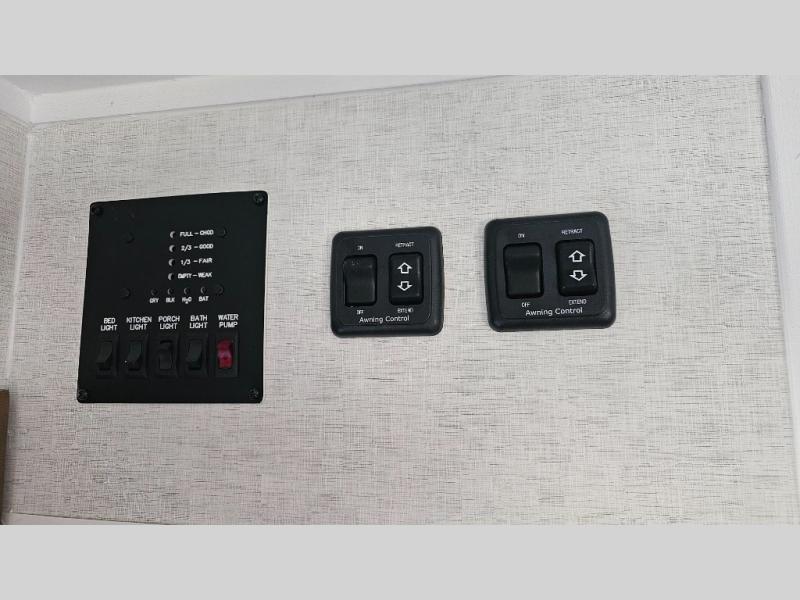 You'll love time at the campground in this lightweight travel trailer! Everything you need for an enjoyable experience has been provided, such as a functional kitchen with a two-burner stove and 12V refrigerator to cook and store food, plus a convenient wet bath so you can freshen up each day! A 68" jack knife sofa with a 68" x 31" bed/bunk above will provide sleeping space for guests, while you take the 45" x 74" bed. There are overhead cabinets for your things, along with two pantries for dry goods, snacks and more!