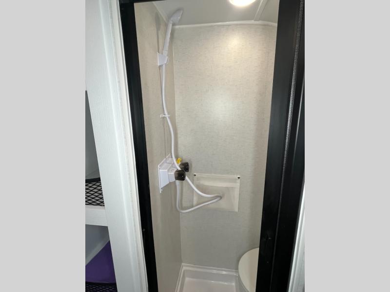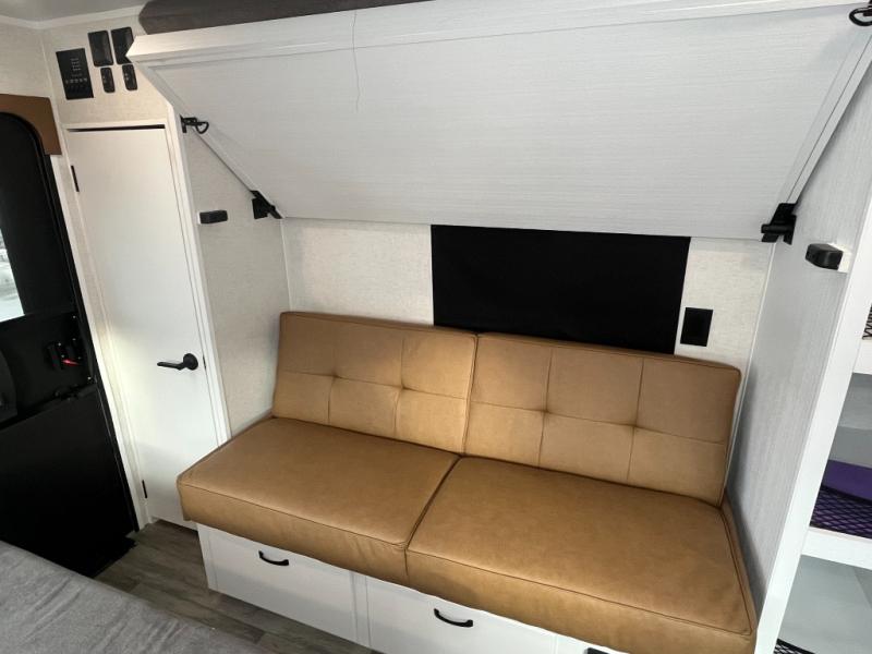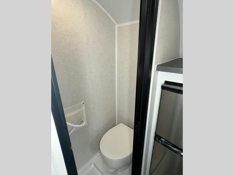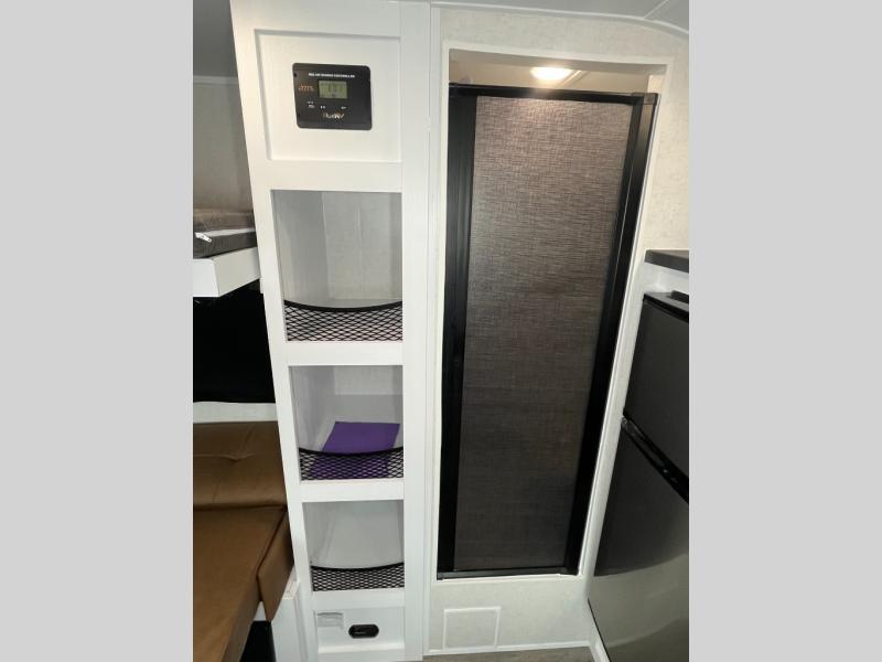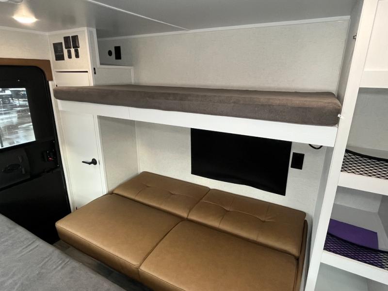 Make every outdoor adventure count with a Hopper travel trailer or toy hauler travel trailer by Modern Buggy RV! These lightweight units are built to last with a custom steel frame and Azdel walls for added durability. You'll find all the necessities needed inside, such as a 13.5k BTU A/C, a 19k BTU furnace, and a Fogatti on-demand water heater for hot showers after trail riding or hiking. The Hopper is off-road capable with all-terrain tires, electric brakes, and 14" ground clearance. You will also enjoy the black roller shades inside, along with White Sands cabinetry and USB stations to keep your gadgets charged and ready to go!