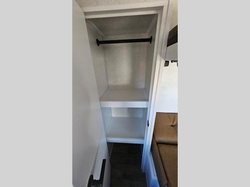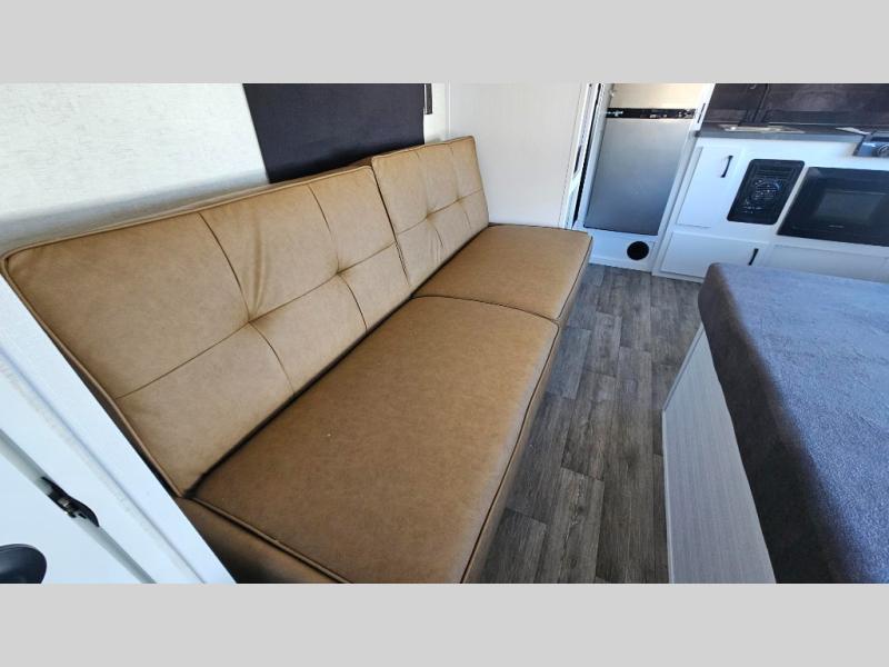 You'll love time at the campground in this lightweight travel trailer! Everything you need for an enjoyable experience has been provided, such as a functional kitchen with a two-burner stove and 12V refrigerator to cook and store food, plus a convenient wet bath so you can freshen up each day! A 68" jack knife sofa with a 68" x 31" bed/bunk above will provide sleeping space for guests, while you take the 45" x 74" bed. There are overhead cabinets for your things, along with two pantries for dry goods, snacks and more!