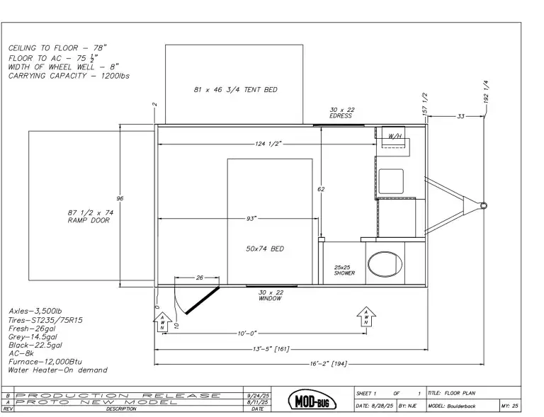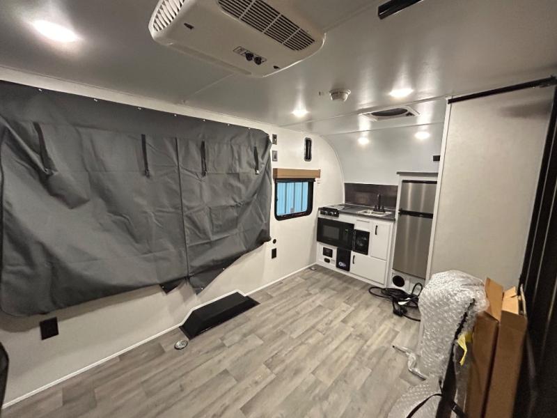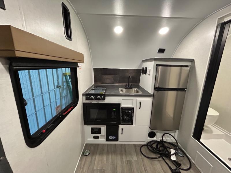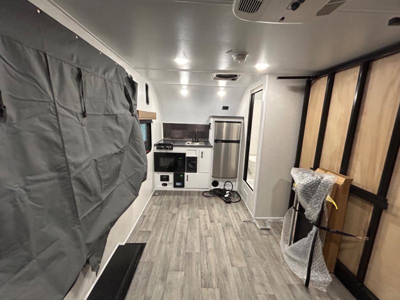 Make every outdoor adventure count with a Hopper travel trailer or toy hauler travel trailer by Modern Buggy RV! These lightweight units are built to last with a custom steel frame and Azdel walls for added durability. You'll find all the necessities needed inside, such as a 13.5k BTU A/C, a 19k BTU furnace, and a Fogatti on-demand water heater for hot showers after trail riding or hiking. The Hopper is off-road capable with all-terrain tires, electric brakes, and 14" ground clearance. You will also enjoy the black roller shades inside, along with White Sands cabinetry and USB stations to keep your gadgets charged and ready to go!